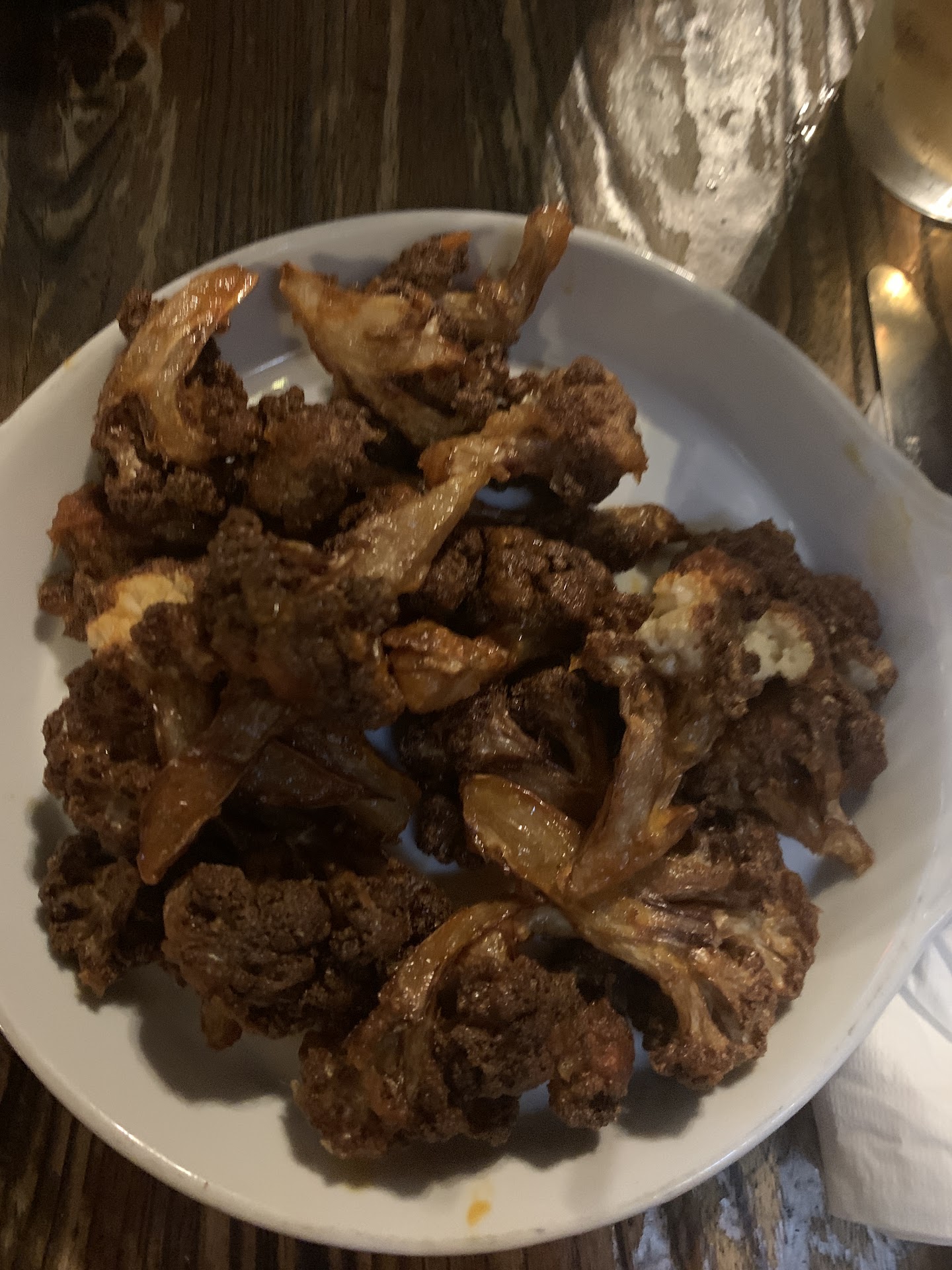 The wings were so overcooked, they were literally fibrous. The cauliflower looked like it was just dropped in a deep fryer and slopped onto a plate. It was disgusting.