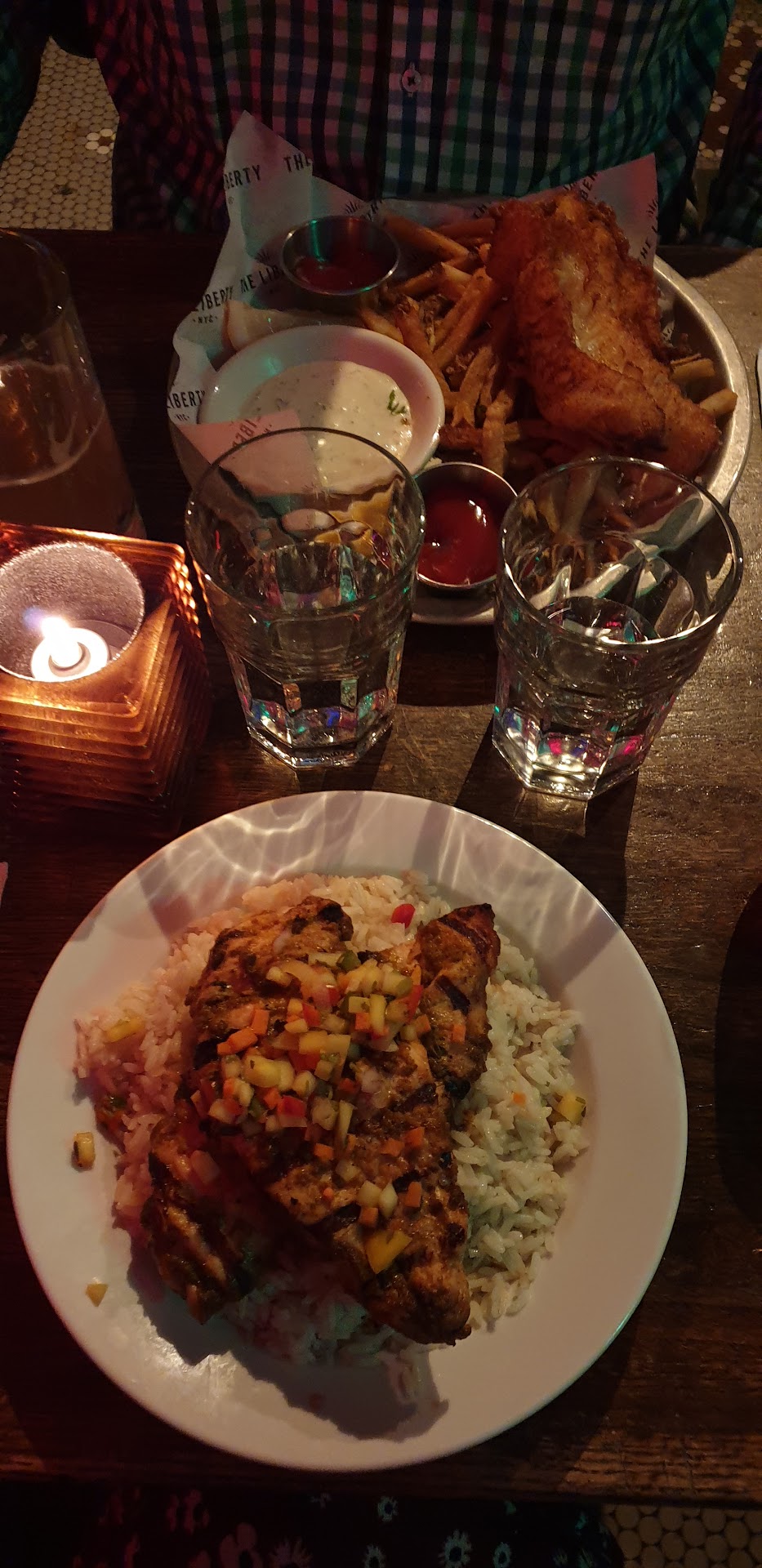 Read moreMy wife and I spent entire 10 days in NYC. During our stay, one of the days was Valentine's Day. I had a table already reserved in different restaurant but when I saw the place physically, I canceled it. So there was a need to find something quickly and The Liberty NYC was one of the places with free tables (two days before Valentine's Day). I reserved a table thanks to OpenTable. After coming to this place, it looked nice, there was a lady and bodyguard at the entrance. My reservation was quickly found and we received the table, without any waiting. My wife and I ordered couple of beers and coctail. As main dish we ordered Liberty Burger and Fish & Chips. Burger in taste was ok, could be more seasoned. The meal was for my wife and was ok. For me it was a little bit too small. However Fish and Chips was a different story. Fish was good in taste but was over-fried. As well as fries but less. Everything was so hard to chew on. For the entire dinner we paid nearly $100 but we left a little bit hungry. During our walk back to the hotel, we bought couple of pizza slices in one of the budget places. Do I recommend? Yes. The place is ok, the food was not delicious but tasty. The problem with this place is that there is poor quality-price ratio. Will I come back? No. There are many places in NYC...