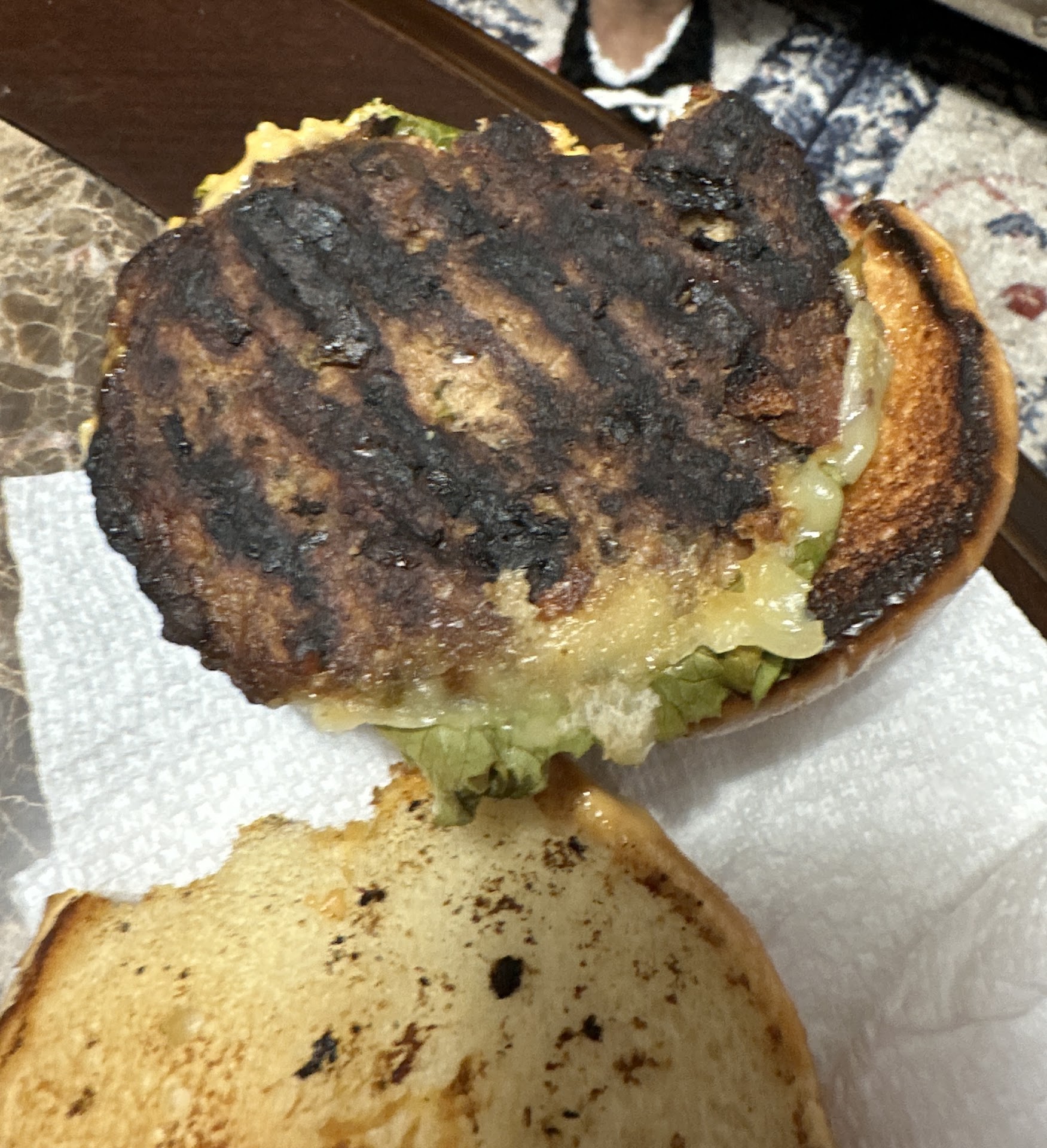 The audacity- he said I ate half the burger and wanted to get a free meal. I took a bite and then spilt it down the middle and then split the raw patty to show them.