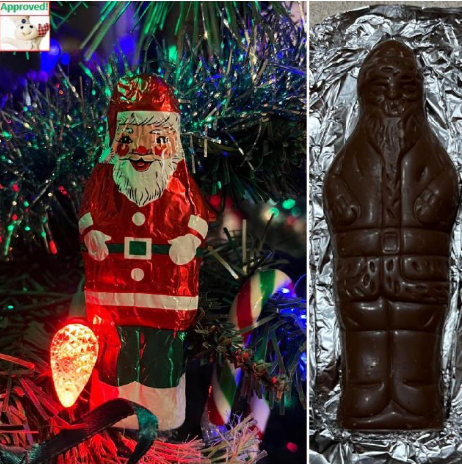 Madelaine Chocolate Santa: The Madelaine Chocolate Company was founded in 1949 by brothers-in-law Henry Kaye and Jack Gold. Located in New York City, the founders named the company after a popular Hollywood actress of the time as they thought the name exemplified elegance and sophistication. Some of their mold designs and techniques were learned in the Netherlands and the gorgeous foils used to wrap their chocolates are from Italy (and still used today). I found the milk chocolate to be creamy and flavorful, not to mention detailed nicely to look like Santa. My Dad has been giving these to my brothers and I in our Christmas stockings since we were kids and it's the same great taste every year. Doughboy...