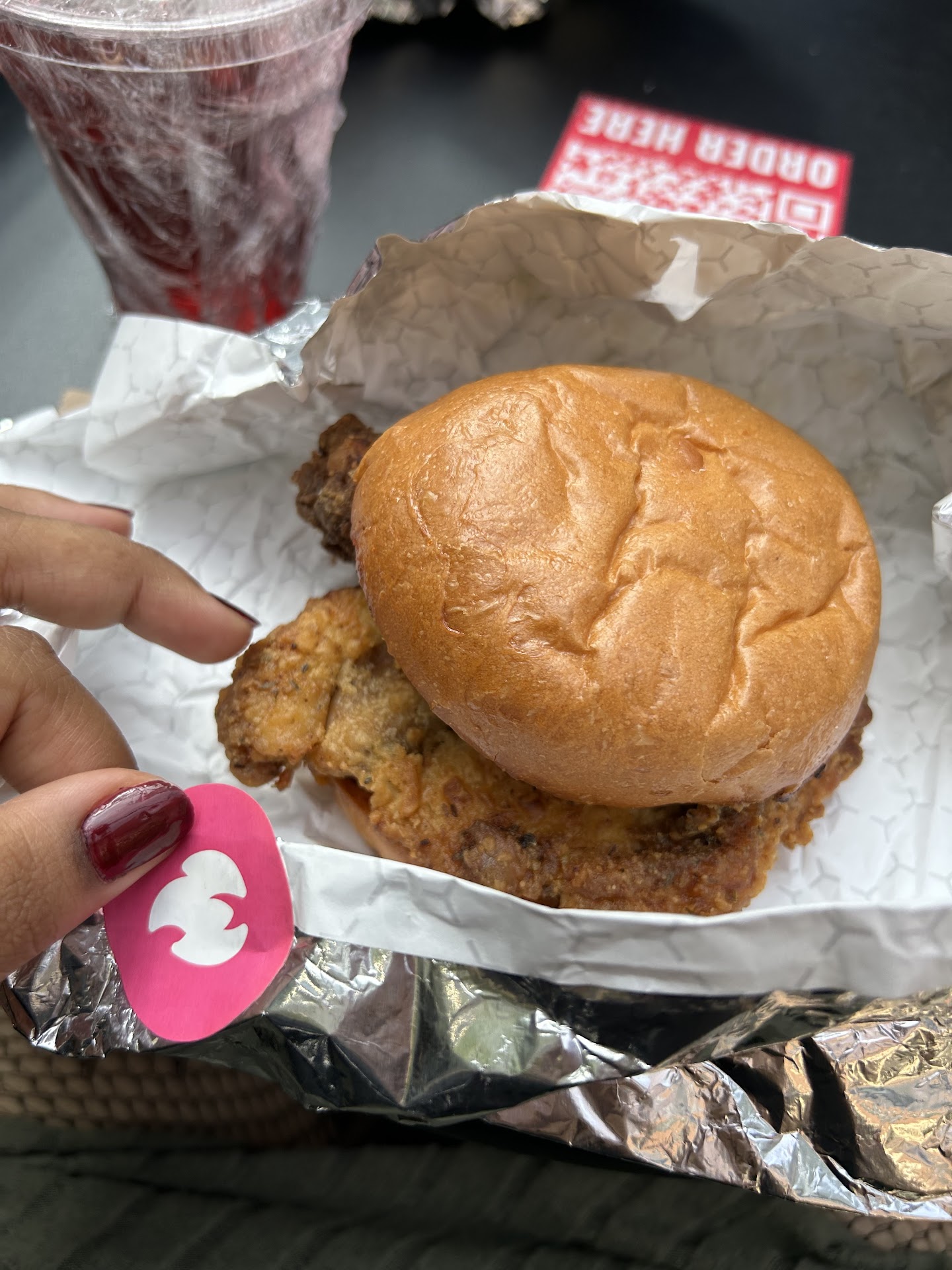The spicy chicken sandwich was a bit dry for my taste but the chicken was real, the bun was great, and after adding the sumac dip it was good!