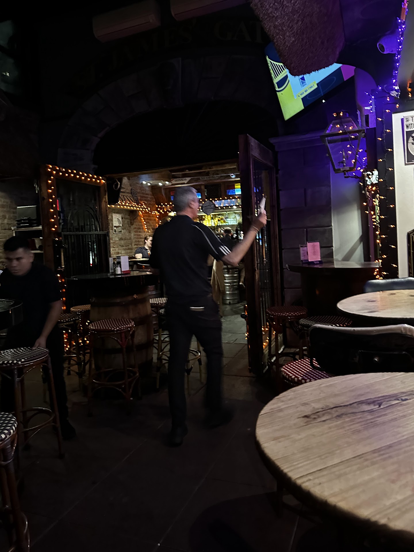 Me and my family walk in 10pm on a Wednesday when the place is almost entirely empty and order 4 beers and tried to leave within 30-40 minutes. Our waiter (picture attached) came to us once to take our order and to give us the bill (after we asked for it 3 times). We tipped $5 because he just handed us a beer and walked away and we didn’t like the service.