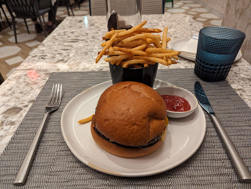 Read moreMy husband and I were staying in the Marriott Courtyard- just a few steps away from this Marriott. We were only there for one night. We walked here for lunch. It’s very nicely decorated and has a very nice aesthetic. The prices are a little pricey. I got a Caesar salad which was only $14, but then I added grilled shrimp, which was another $12. My husband got the salmon. The waiter asked how he wanted it. We assumed he meant “blackened, grilled, broiled, fried”, etc. but he only meant rare, medium rare, well done, etc. Our food came out after about 15 minutes. The portions are pretty big. However, for me, my salad was not very tasty just because most of the romaine lettuce was just the white and yellow parts- not much of the healthy greens, AND there was very little dressing on it. What little dressing I did taste, I could tell it was a homemade dressing. The shrimp was very good, but it only came with 4 shrimp. My husband loved the salmon. It was served on a bed of wilted, sautéed spinach and fennel with a side of pumpkin. It was very delicious. He also got a bottle of sparkling water with his meal. Altogether our bill was $73 before tip. A little pricey. But we had a nice, tasty, healthy lunch in a nicely decorated restaurant, with pretty good service. They also have a nice patio area for eating, but it was very windy that day, so we opted for inside. If we ever stay in that hotel again, I would definitely go to...