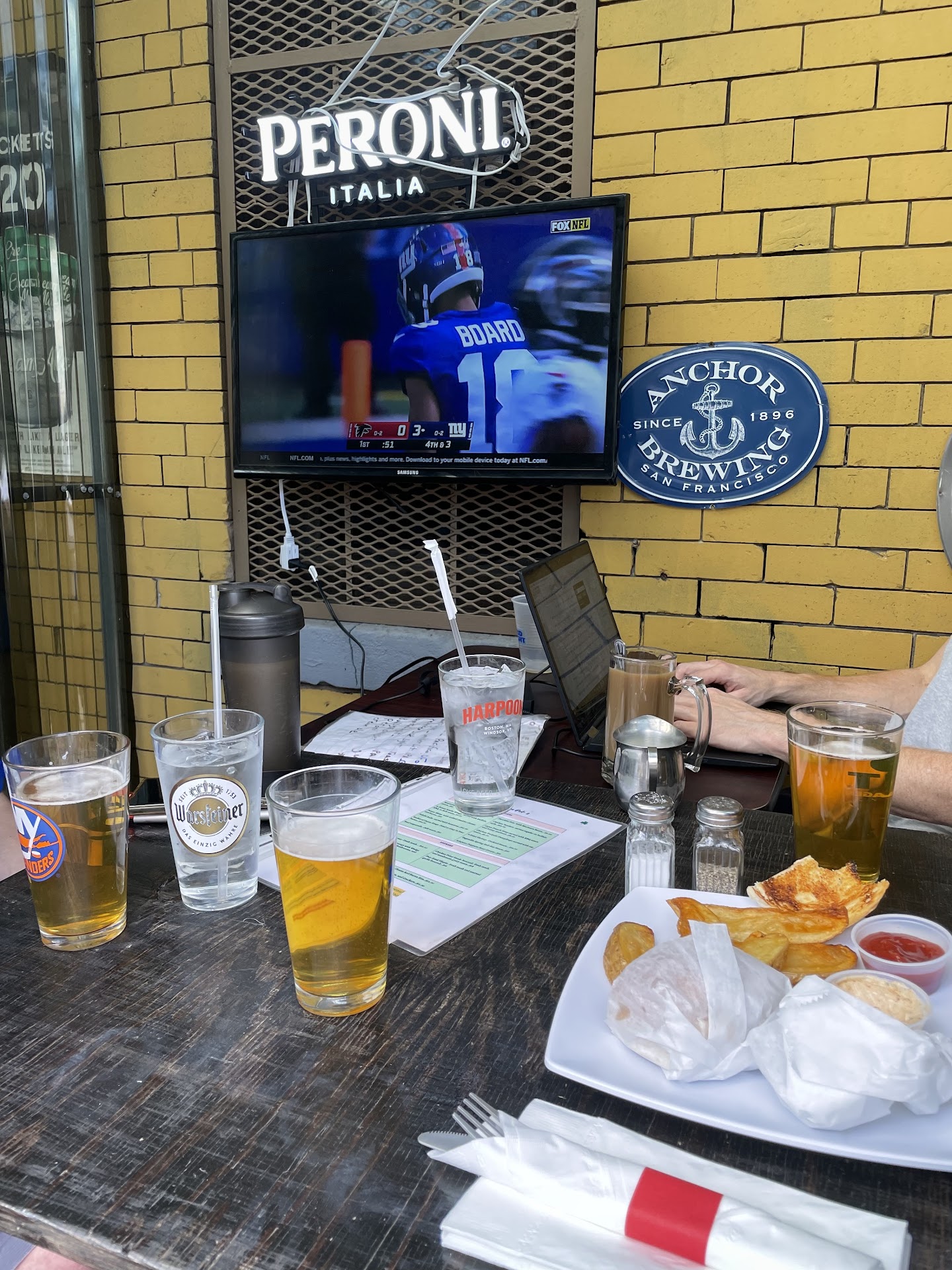 Read moreCame here on a Sunday afternoon to watch the Giants game. They have dog-friendly outdoor seating with small shanty-like structures that each have their own small TV with audio! My friends and I posted up in one of these tiny outdoor rooms which looked a bit crampy from the outside but turned out to be pretty cozy. Inside, there’s a couple big screen TVs and typical bar seating. The waitress was super friendly, was affectionate with my dog, had a great positive attitude, accommodated our request to change the TV from golf to football, and even gave us free shots before we left! We each had a few beers and some brunch plates and I enjoyed all of them. I’ll definitely be coming back here to watch the Giants...