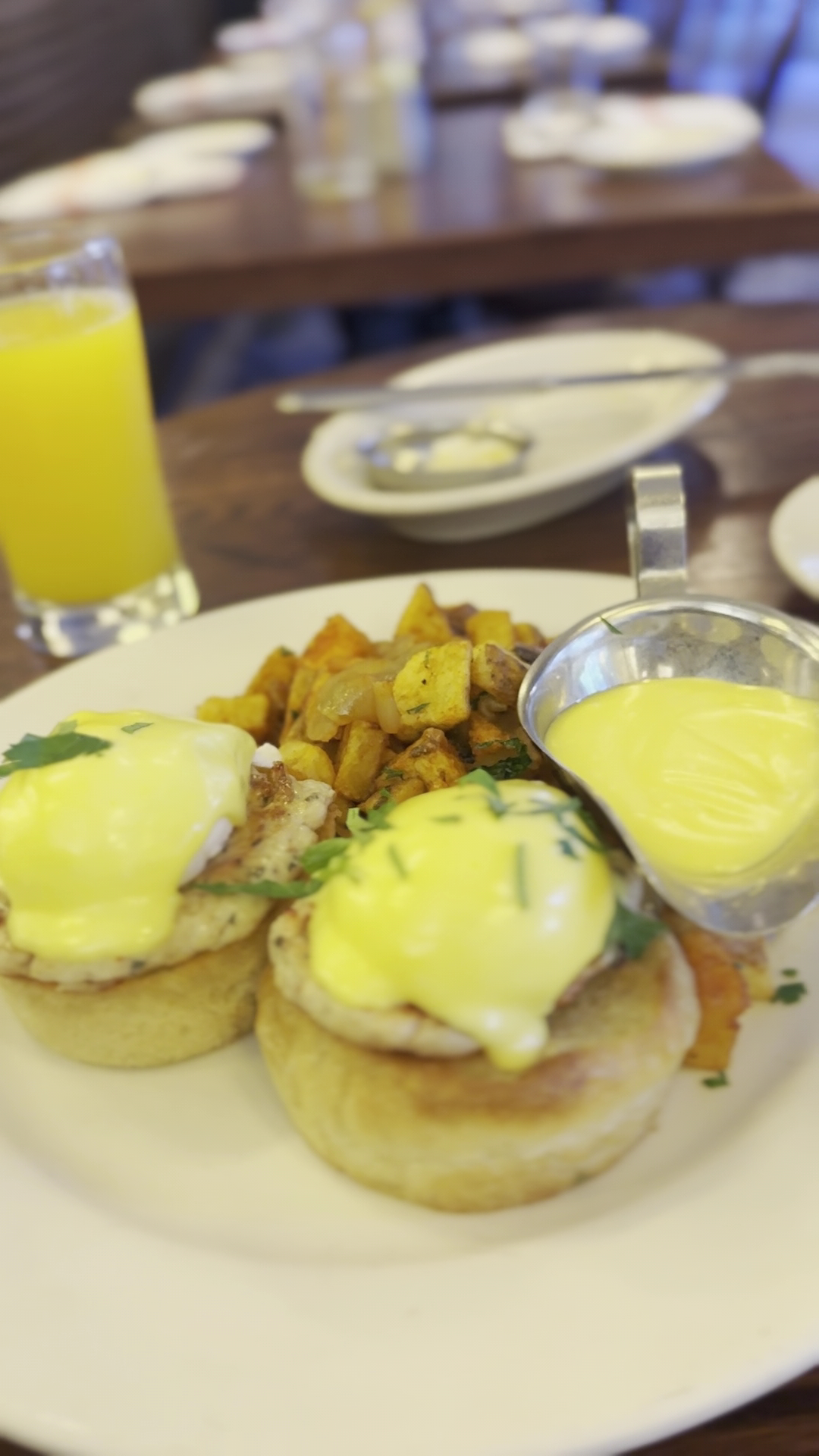Chicken Sausage and Eggs Benedict: This dish stands out with its perfectly poached eggs, creamy hollandaise sauce, and the unexpected yet delightful addition of chicken sausage. The Eggs Benedicts here are always amazing, but these ones are different. Instead of the traditional Black Forest Ham, they feature flavorful chicken sausage. This substitution adds a unique flavor that complements the eggs and hollandaise beautifully, making this Benedict a must-try. The chicken sausage was truly outstanding, with a savory flavor and just the right amount of seasoning. It has a little tangy taste that adds a delightful kick to the dish.