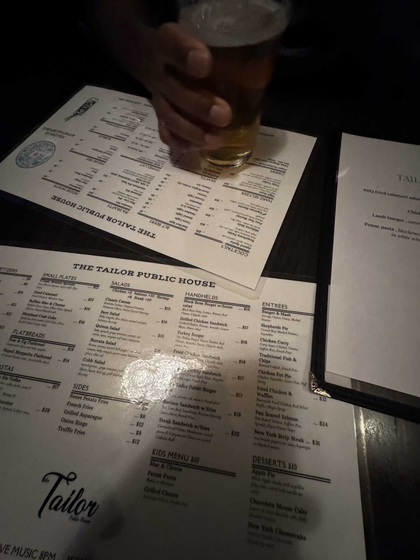 After a long day of exploring, we were ready for a satisfying, high-quality meal to wrap up our adventure. Strolling through the streets of New York, we happened upon Tailor Public House. Thankfully, they had a menu displayed outside, so we quickly skimmed through it, and everything seemed promising enough to step inside.