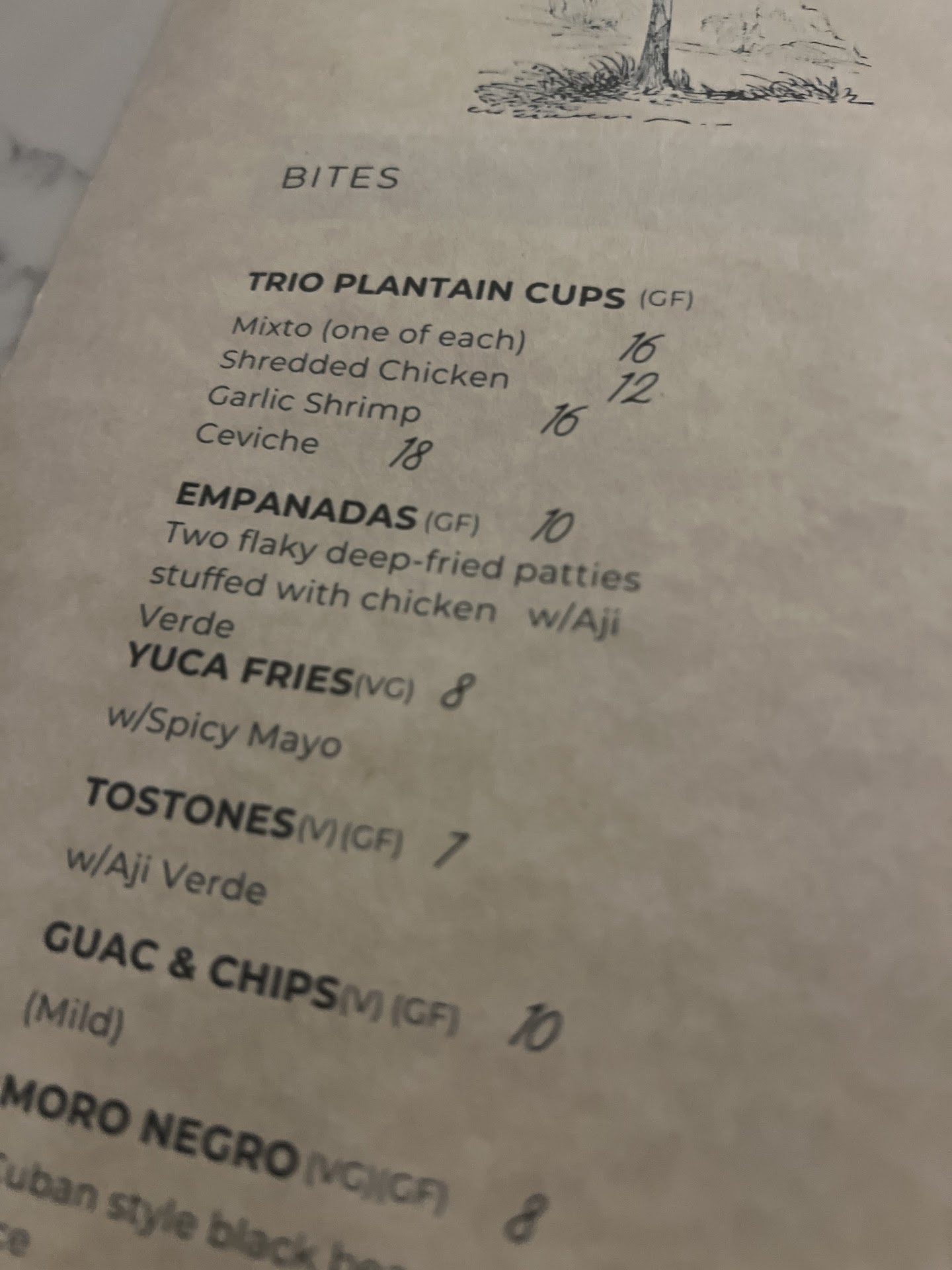 We were the only ones in the entire place at first, I told the bartender/server we were celebrating my friends birthday and wanted to check the place out- took about 10 mins for our first round of drinks (two drinks). I mentioned to the server I didn’t have a menu with a food portion on the back that took another 5 mins (still the only ones and I saw the menus from our seat so I was confused) and my friend and I just shared one. We ordered empanadas, guacamole, and yucca fries. It took about 30 mins for that to come out and he said there was a new bartender and chef, I asked if they had just opened he said they were open a year….concerning based on the experience we had so far. The food arrived and the empanadas did NOT match the description and tasted DISGUSTING. It looked like something I could have gotten at Costco and was room temperature at best…after waiting 30 mins to get food. My friend used the restroom and it was a mess- they had just opened for the day so how?- had no toilet paper maybe due to the toilet paper roll being broken? And the paper towel dispenser being broken. The music went out 3 different times over the 50 mins we were there, with periods of 1-2 mins of pure silence randomly. The playlist was super random from top 40 to Madonna but no Latin music despite Latin night starting in an hour (also the reason we had chosen this place). Overall, what I had seen from friends who were influencers versus what I saw and experienced made me wonder if I was in the...