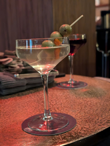 Drinks/Food: We all only got 1 drink each and didn't end up ordering food so I can't speak to the food. I can say that they offered free rice chips which were absolutely drowned in oil (I felt bloated after eating only 1). I got the Martinez signature cocktail and my wife got a dirty martini. The upside here is that both drinks were excellently made and well-balanced. The dirty martini was exactly what my wife wanted and the Martinez was a fun cherry-tinged twist on a classic gin martini.