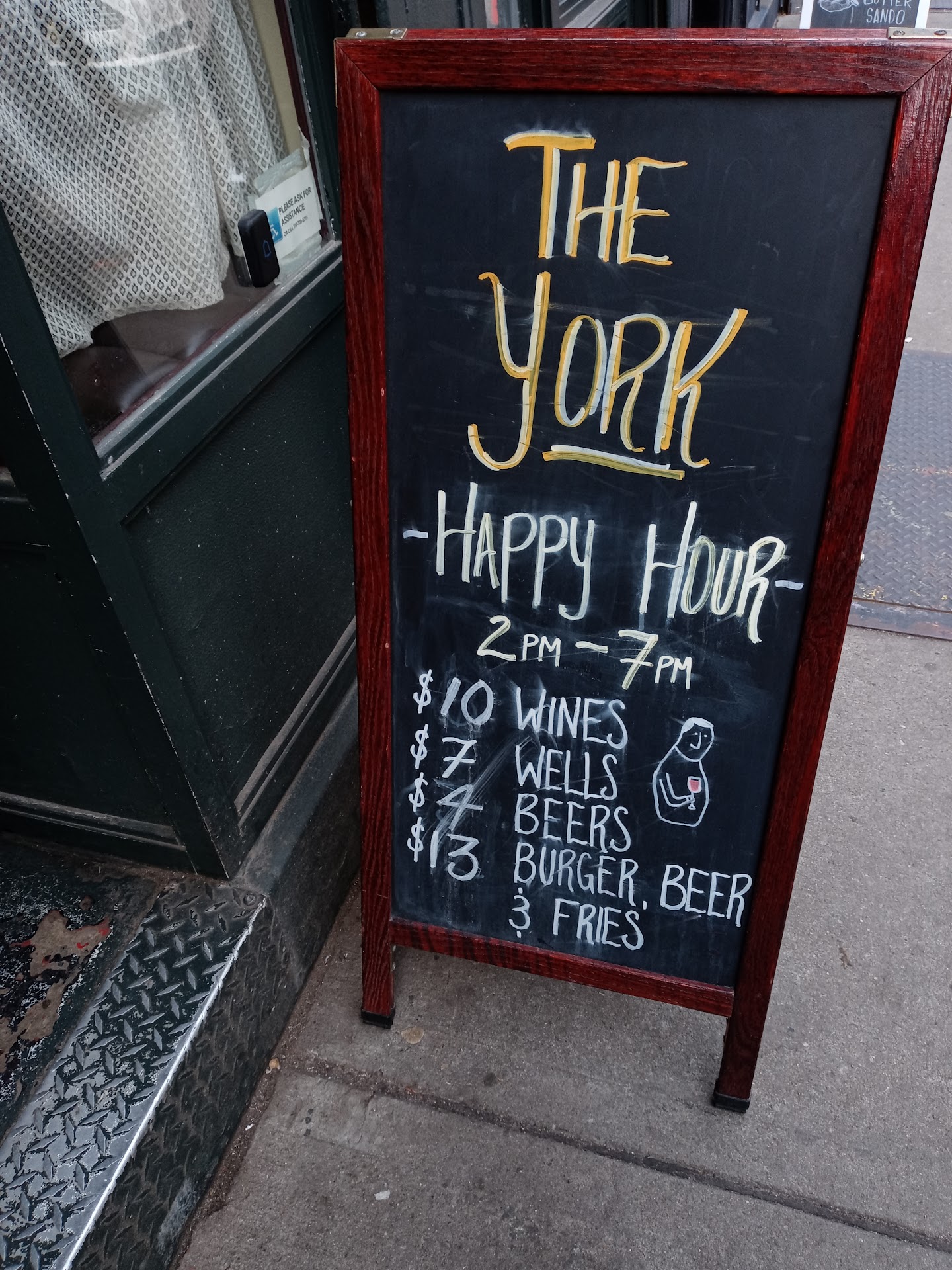 I have been walking by the York for the past few weeks, and saw the happy hour sign outside.
