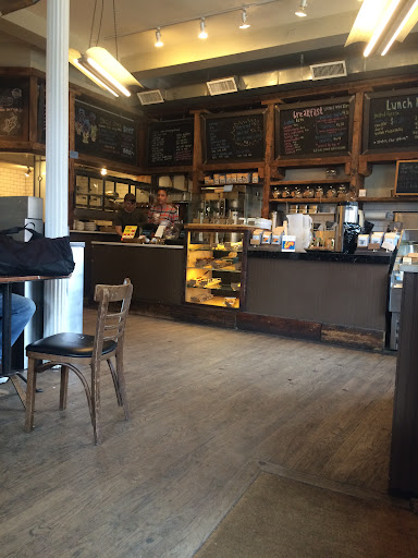 Atmosphere is chill, sometimes other places the music is WAY TOO LOUD but the music here was at perfect volume where it’s like background/atmospheric sound instead of trying to understand what the other is saying because you have to speak at the top of your lungs just to make sure you’re being heard type of sound, especially for a cafe in NYC let alone manhattan. But they have plugs outside too if you choose to sit during the warmer seasons. The cashier was SUPER sweet and had a beautiful smile. People inside were...