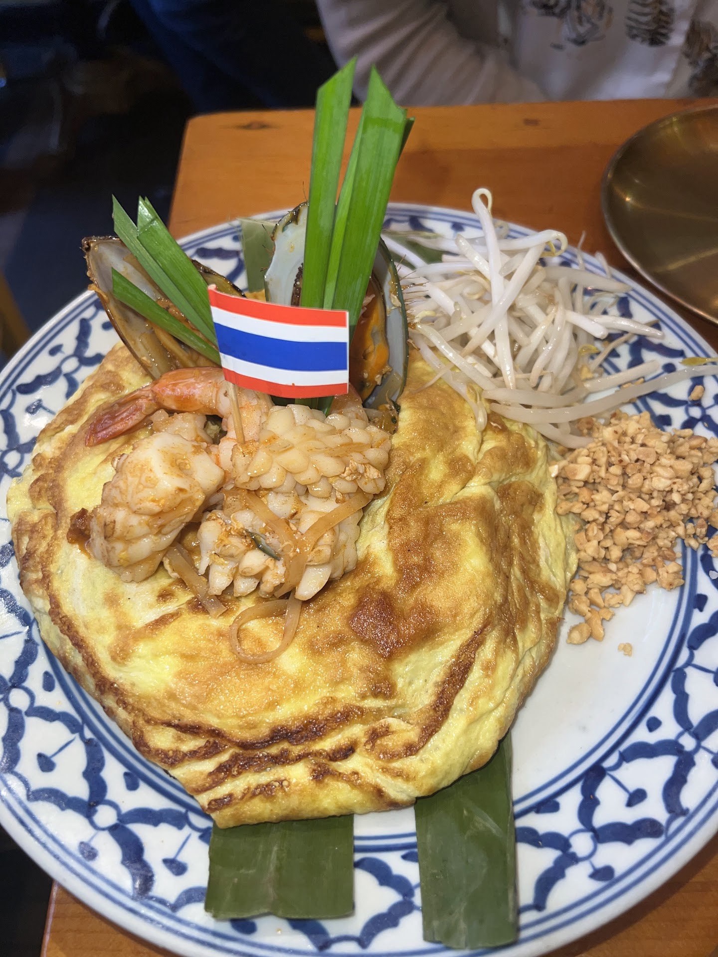 -Phla Kung (shrimp salad - chili paste, red onion, mint, lettuce in a spicy lime dressing) - we originally wanted to get the soft shell crab salad, but the waitress said it wasn't that good, which I appreciated. We really enjoyed the shrimp salad. The shrimp were big and perfectly cooked, and the lime dressing was so fragrant/flavorful/delicious -Khao Soi (egg noodles and chicken in a Thai curry broth) - the broth was good but the chicken was not. It had that old leftover chicken taste. You also have to eat the noodles pretty quickly, otherwise it becomes a soggy mess -Chicken larb - the flavors were good but the chicken again had this leftover taste. The spicy lime dressing from the shrimp salad helped make this dish a bit more palatable -Pad Thai with mixed seafood wrapped in egg - this was on the “Chef’s Specials” section of the menu, which I guess meant they put an egg on it and charged $25 on it. So not worth it. There was barely any seafood - just whatever is on top, which was three pieces of squid, two shrimp, and two mussels. The noodles itself were good so you're better off just ordering the regular Pad Thai. That'll save you $9
