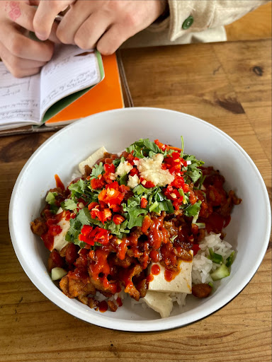 I arrived to be welcomed by the owner, Sy (spellcheck, please). She.is.phenomenal. We chatted for a bit before I ordered. There’s no seating inside, so I went outside to sit and wait for my food. I had no idea what I was in store for. I tried several different dishes. The spicy pork bowl being one of them. Rice and pork, marinated in gochujang, ginger and other flavorful components, really got me in my feelings almost instantly. You taste the warmth, and the experience, and the love right away. I also tried the kimchi jjigae, which is a hot stew with kimchi, pork, onions, green onions, rice, and more. I’d say this was one of the most special dishes. The kimchi soaking in that stew, the tofu absorbing all of those flavors….ugh. Cooking is an art. This was cooking from a deeply rooted cultural background. The history was in every bite. I also tried the spicy pork ssam wraps, which were delightful. More of that yummy spicy pork, but with the freshness of the lettuce. Such a bright, Spring-y dish! The seafood scallion pancakes were one of my faves! Savory pancakes, packed with flavor, and seafood! I also tried the steamed meat kimchi mandu, which appear as dumplings, but owner Sy says, “no, it’s mandu”. And listen, I wasn’t about to argue with her! She KNOWS, ok?! The mandu was divine. They were stuffed with kimchi and pork. After speaking with Sy, I have so much more of an appreciation for kimchi. She says the process is tedious, that it takes time. The more steps you add to your kimchi, the better it tastes. The more flavor you develop. She says it’s a lot of work, but that she doesn’t regret it. The kimchi is a top seller because it’s served in so many dishes.