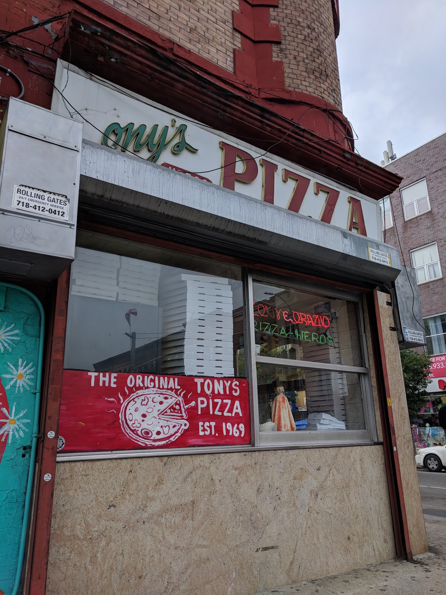So I grew up eating Tony’s pizza. Been a huge fan since the very EARLY 80’s!!! My aunt lived across the street above the furniture store from 1978 to 1996!!! :::hint hint::: so Tony’s was it for me after school. Moving away from Bushwick I knew I would never find an authentic old school Italian Pizzaria like this. I’ve lived just about everywhere in the USA! I have indulged in great pizza during my business travels but always felt the pizza’s fell short. I returned a few times to Tony’s (sometimes driving 2 hrs for just a slice!) and I have to tell you the pizza there never changes! Recently, I visited Tony’s pizzaria and realized it was under new management. :Lmao ya can’t fool me!: I met George the new owner and didn’t tell him about my experience with this place, this was my home! Every day after school and weekends! My very small skinny petite figure could take down any amount of Sicilian or slice you threw at me! So I continued to order thinking it was going to be different, I ventured anyway. When the pizza came out it was EXACTLY how I remembered!!! A huge slice, hot, sweet, tangy, cheesy and the crust was perfectly crispy!!!!! It was like having old man Tone make it himself! When I got up to order my third slice one of the guys behind the counter laughed and asked me where I was going to fit it. “Don’t worry just give me my slice!” I was really trying to find something off, some inconsistencies but I couldn’t! I couldn’t find anything different with the pizza!!!! I drove an hour for those slices! You better believe I was getting my mileage worth! Lmao! Thank you so much for not changing the recipe! Keep...