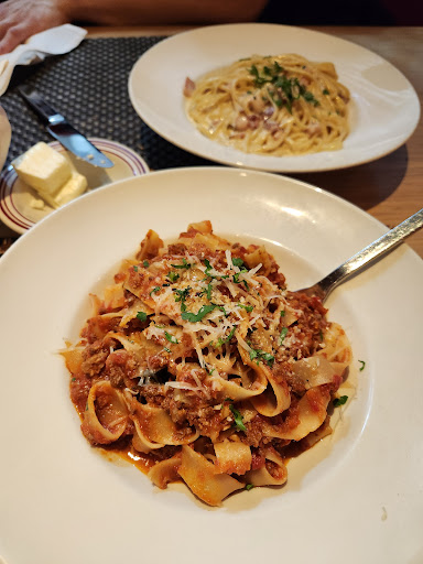 the parpadelle bolognese i ordered leaned heavily towards a meat sauce out of a jar than a bolognese sauce. the parpadelle was also overcooked, and the pasta noodles kept breaking when I tried to eat my dish. my partner's Linguine carbonara was somehow bland and greasy at the same time.