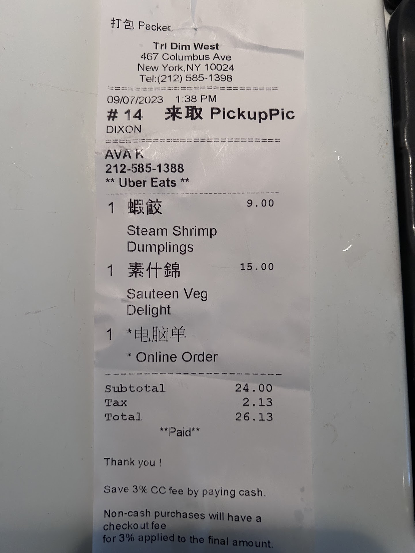 I was still hungry after the order. I did not feel it was worth the money I spent. The food was meh. DoorDash delivery made it easy and based on the reviews we thought it was a good place. But I ordered steam shrimp translucent dumplings (there were 4 small ones for $9) and Sautéed Vegetable delight for $15. Total with tax and delivery was $26.13. The vege w rice dish was in a white sauce and there was a decent variety of veges (carrot, broccoli, thin mushrooms, bamboo shoot, and watercress) but definitely not enough. The container was the shallow one and it was only half filled. This was not a lunch special portion but there was really hardly any food. I was hungry and ate it in record speed bc there was so little food I forgot to take a pic but I took a pic of the containers washed to be recycled. The dumplings were good but they were about 1.25” wide and just 4 for $9. We were so hungry after this meal. Veges don’t cost anything to fill up the shallow container more than half the container. I hope they give more food for the next customer. But I won’t be coming back sorry. The rice was good and not gooey…it was fresh...