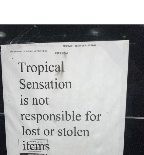 This establishment is incredibly poor at protecting customer information for those individuals that order online. My family was contacted by a patron via text with pictures of a family members information that was plastered all over the bathroom. We don’t know how long it was up there, it appeared to be an order from 2020. Data breaches occurs often when utilizing internet but this was not the case. This is a human, using no form of common sense and pretty much risking customer identity and safety (it included a physical address, phone number and access to building information on the receipt) I’ve provided the images with sensitive info cropped out of the picture but I have provided it in the way it was received via the Good Samaritan. Worrying about not taking responsibility for stolen property but giving customer info for free. As a long standing resident of the neighborhood, well before Tropical Sensation even opened its doors, it’s infuriating. We’ve supported this establishment for many years and to have our info mishandled is unacceptable. Who knows how many other customers info has been displayed this way? Order online from this establishment at your own risk with this knowledge. This was incredibly disappointing, especially to longstanding...