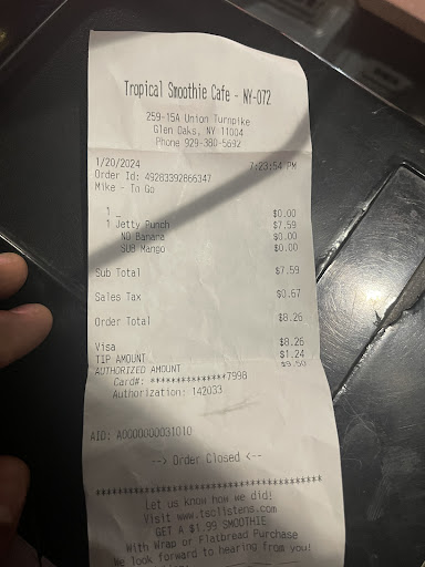 The Thai wrap was really good, but the mocha smoothie was really not. It was the first time I tried it, and when I asked the employee if they could possibly replace it they said they could not because āthey couldnāt do anything with itā.