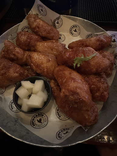 The menu at Turntable Chicken Jazz is truly exceptional. I had the pleasure of trying their spicy soy wings, spicy chicken sandwich, and kimchi fried rice, and I must say, each dish was absolutely delicious. The flavors were perfectly balanced, and the spiciness added an extra kick that took the dishes to another level.