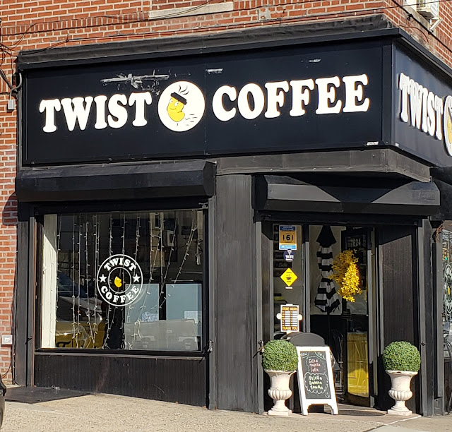 Very nice space.Music isn’t too crazy so you can seat and enjoy a good coffee or just do some work on your laptop. The place has a nice look,not a big fun of the forniture but it is just my taste. I love the neighborhood,full of nice stores and close to bus stops and a nice park. So Twist coffee is in the perfect corner,stop,get some coffee,refuel and go. The girl behind the counter was fast and attent. My only suggestion she should keep her phone volume down a bit,was kind of annoying while seating...