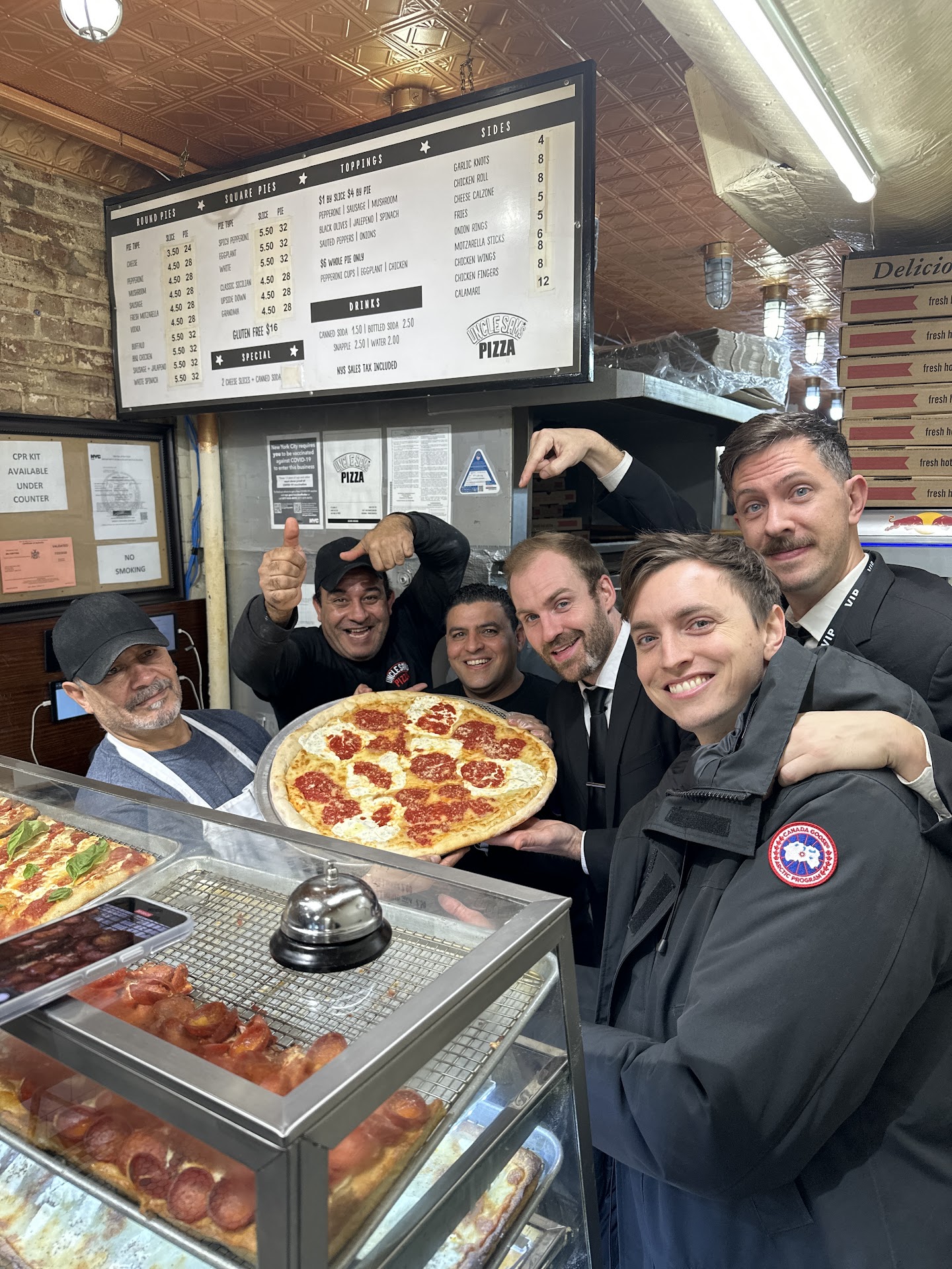 Read moreUncle Sam's is a small new-ish pizzeria on Clinton Street. it is a neighborhood spot, not really a destination pizza place as it is not a sit-down place, but perfect for delivery and takeout. there are some raised ledges to stand by and eat. there's a small table outside if you want to brave the weather. everything looks clean and brightly lit inside. the menu has a small variety of pizzas as well as calzones, garlic knots, onions rings, chicken wings, and more. soft drinks only.