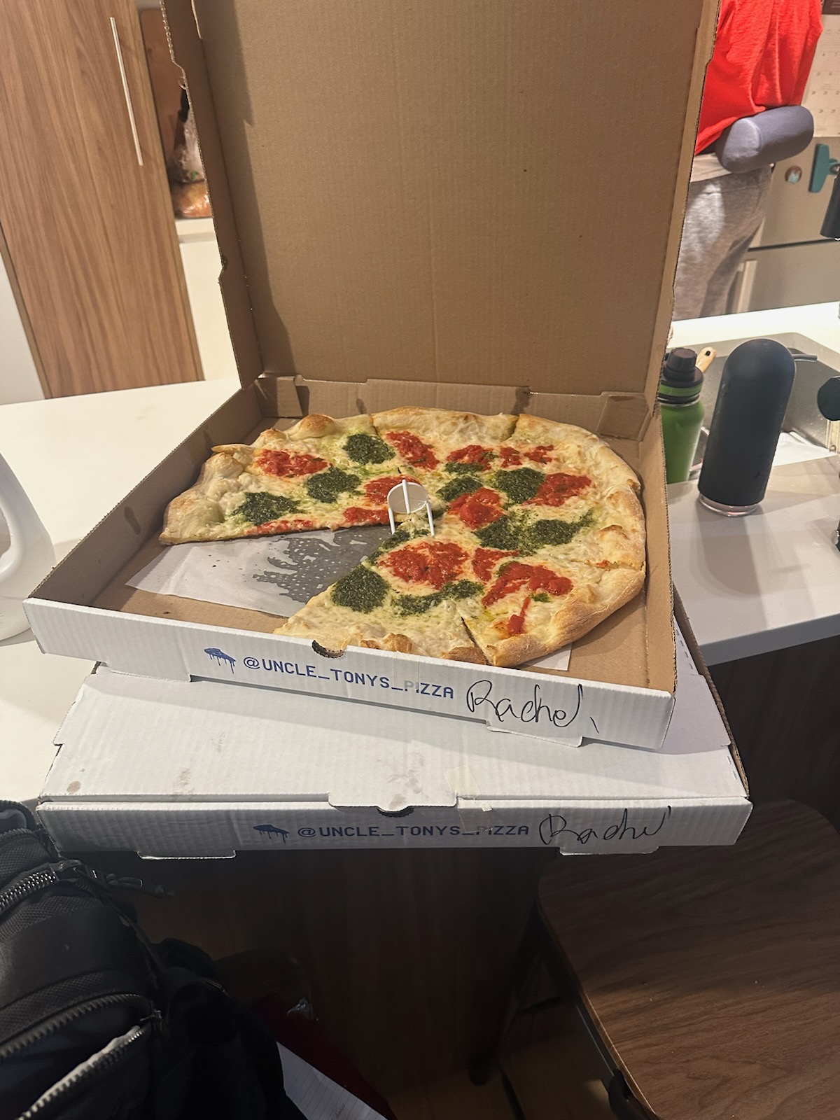 Read moreI went to Uncle Tony's Pizza last night, and had a terrible experience. The women working behind the counter had a terrible attitude, and clearly took no pride in her job. When we were ready to order, we told her what we wanted, half regular half supreme, but she said we had to buy half supreme and half Sicilian, so they wouldn't have to make a new pizza, that cost us an extra $5 for the pizza we didn't want. When I asked her what it was, she had no idea, and then after reading the menu she just pointed at the pizza and said it's that. She couldn't tell us what drink flavors they had either. When we got The pizza, four of the pieces were completely black on the bottom. When we finished, we cleaned our own table, and threw away all our trash, except for the pizza box which wouldn't fit in the can, so we gave to her. This was such an inconvenience to her that she let out a very audible frustrated sigh as she came to take the box from us. In reality the unburnt pizza was very good, and I am very happy they used unbleached flour and organic tomatoes. Terrible service from the one employee paid to...
