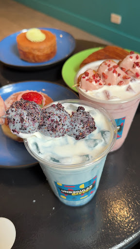 Read moreI know the owners are really proud of their creations everytime they do something, i follow them in social media and I know their irregular pizza stores very well and i know them... this one time, like every time, they created a unique and cheerful place with the same color theme from the 90s of their pizzerias and the execution has been, again, lovely. The bakery is big enough to spend a good quality time there even if you need to work. The food is unique, the variety is impressive. They offer bombolone (full-round donut) filled with the weirdest and most succulent things: one is with mangio and chile tajĂn... just heaven, the other i tried was aperol spritz emulsion with white chocolate cream and some aperol caviar on top, so one-of-a-kind...I tried croissants and other pastries because i wanted to bring some home to my family and we were fighting on each of the pieces, hahahaha, because they are so different and unexpected that you really want to try all of them. I want to go for a croissant with their Unregular signature burrata (not sure how they put the burrata inside but we will figure it out) and I heard they do breakfast so i will have some savory bombolone, they have many including salmon, sun-dried tomatos and "everything" croissant) Definitely not possible to go just once since the variety and deliciousness is too wide! No doubt so UNregular, exactly...
