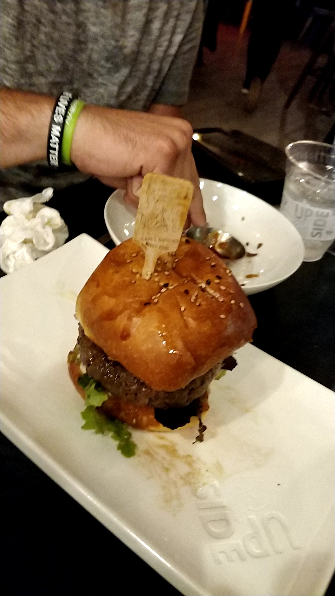Facon Burger: 2.5/5, very disappointed in this burger. For a restaurant to be a burger specialty joint, I expected to have my socks knocked off by this. Just like its name, the burger is upside down, with the toppings on the bottom of the meat patty, instead of above it, like you'd normally expect burgers to be constructed. It was very odd, since the toppings were drowned out by the mediocre meat squashing it down. Perhaps I was supposed to turn the burger to eat it? The toppings also fell out everywhere while I was eating, so that didn't help my enjoyment of it. The meat was not juicy enough, bland, and very thick. I didn't enjoy it. It was a substandard burger. The only good part was the facon jam, and there was not much of it.