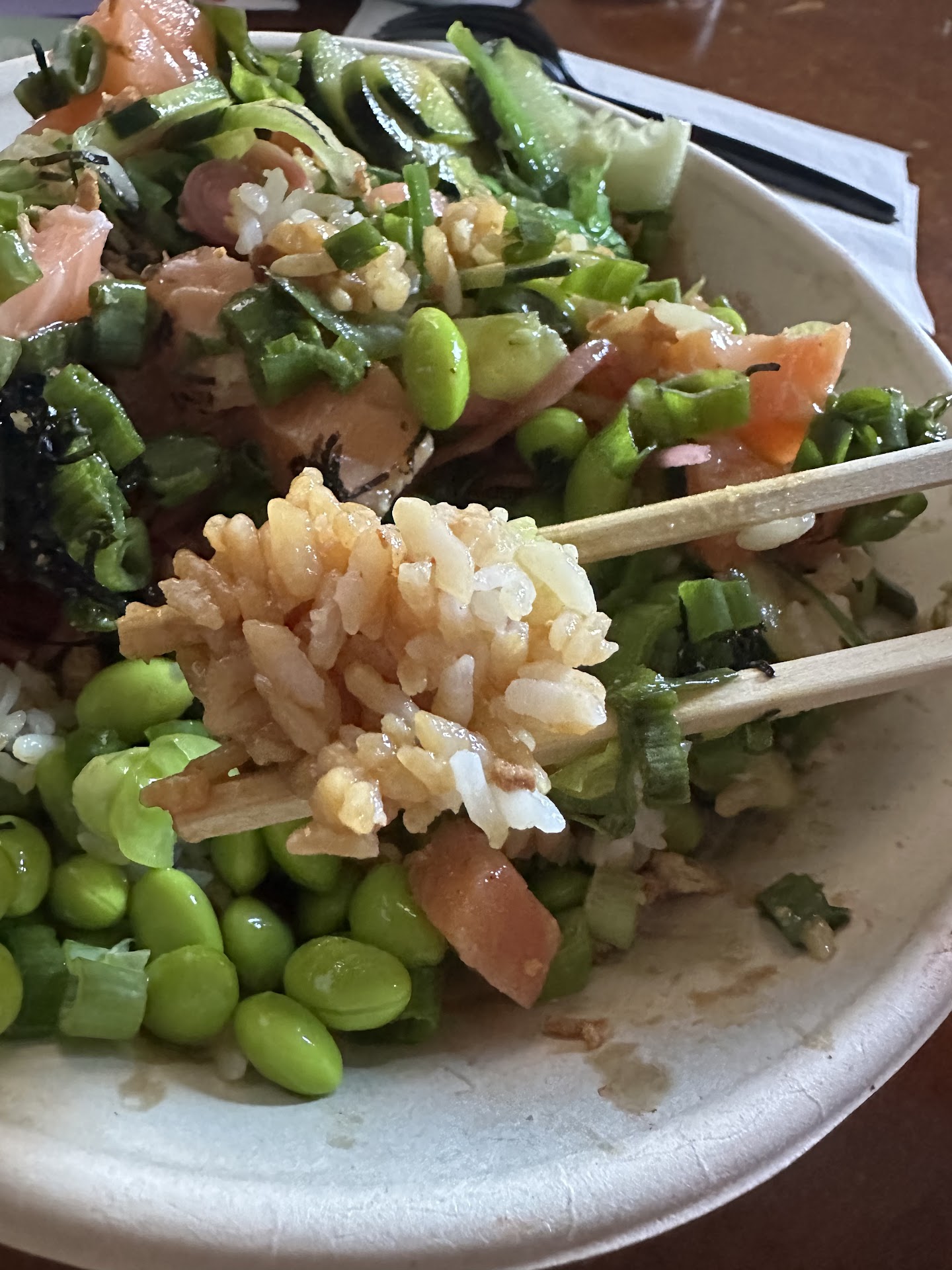 Read moreWhen this place opened it had huge healthy salads. Their bowls were deep and the price was decent. Now the bowls are becoming shallower and the price seems to rise. A reflection on every restaurant on the UWS. Always start out great and now decent. Ordered online for a pickup. I came in, and was not asked about my order just told to wait. A group comes in, orders and their food was made, packaged, and handed to them. Not sure why I had to wait. Finally food comes out. I take it home and it was an over sauced mess. I usually get a nice healthy sushi bowl but this looked like a blend dripping out of a mcdonald's burger. Not sure what is going on , but their standards seem to be lowering. I would appreciate the portions, price , and effort made on the original poke bowls when this restaurant opened as oppose to cherry picking customer queue, smaller portions, higher prices, and less...