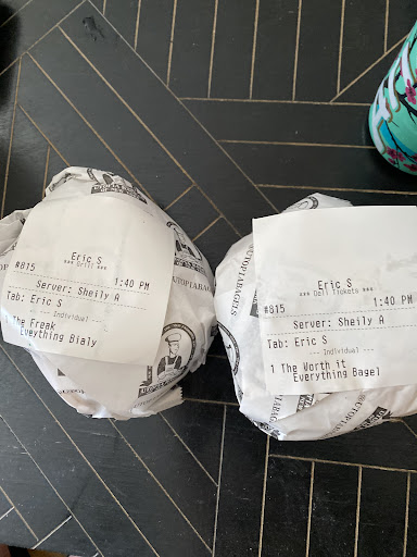 My partner and I went the morning of Memorial Day. The line was super long but there were plenty of seats. All good until it was our turn to order. Was not impressed with the woman at the register. First, when we asked her if they use any dairy products (eg milk, butter) in their eggs (bc one of us has a dairy allergy), she sheepishly said “yessss? I think so…..”. It was apparent that she didn’t know for certain so we had her ask someone who would know. If you’re not sure, don’t guess, just ask! (But also, the restaurant needs to educate their staff, especially those tasked with taking food orders). Confirmed no diary in eggs, great. We ordered a sesame bagel w egg and bacon + a cinnamon raisin bagel (bc they were out of Asiago) with scallion cream cheese. Turnaround was pretty fast. We got our order but, BOOM. The woman screwed up our order and rang us up for a bfast platter of just bacon and eggs (vs bagel sandwich). Annoying. The bagels, as I said, were just okay.
