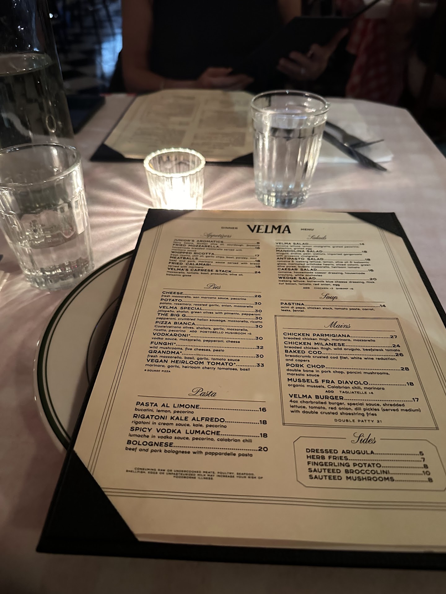 I really really wanted to love Velma. It's conveniently located, and I do like everything else about it, but I don't think I would return for the food. There are better options.