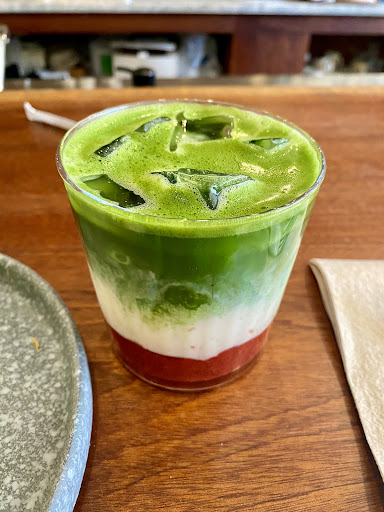 Not everything on their pastry menu was available in the display, but they had a decent selection. The chocolate banana bread was moist and their strawberry matcha latte came unsweetened so that you could add sweetener by yourself to your liking, which I liked. +1 for compostable straws too.