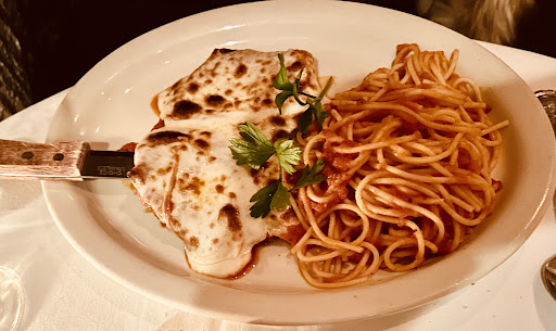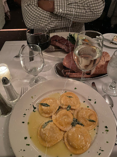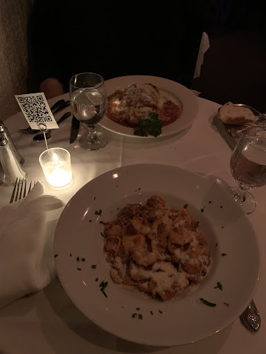 Our appetizer, calamari, was perfectly cooked and crispy. We were practically drinking the marinara sauce! My spouse ordered an in house champagne and gave it good marks. I then received my tortellini and was floored. Simply the best I’ve ever had. Impeccable from-scratch mushroom sauce and pasta, as expected, but not at this level. Portion sizes were great (maybe too great, we barely waddled back to the hotel!). We were then convinced by two gentleman handling the dessert cart to get a pretty undersold “chocolate cake”, which ended up being a decadent mousse topped with sugar and drizzle.