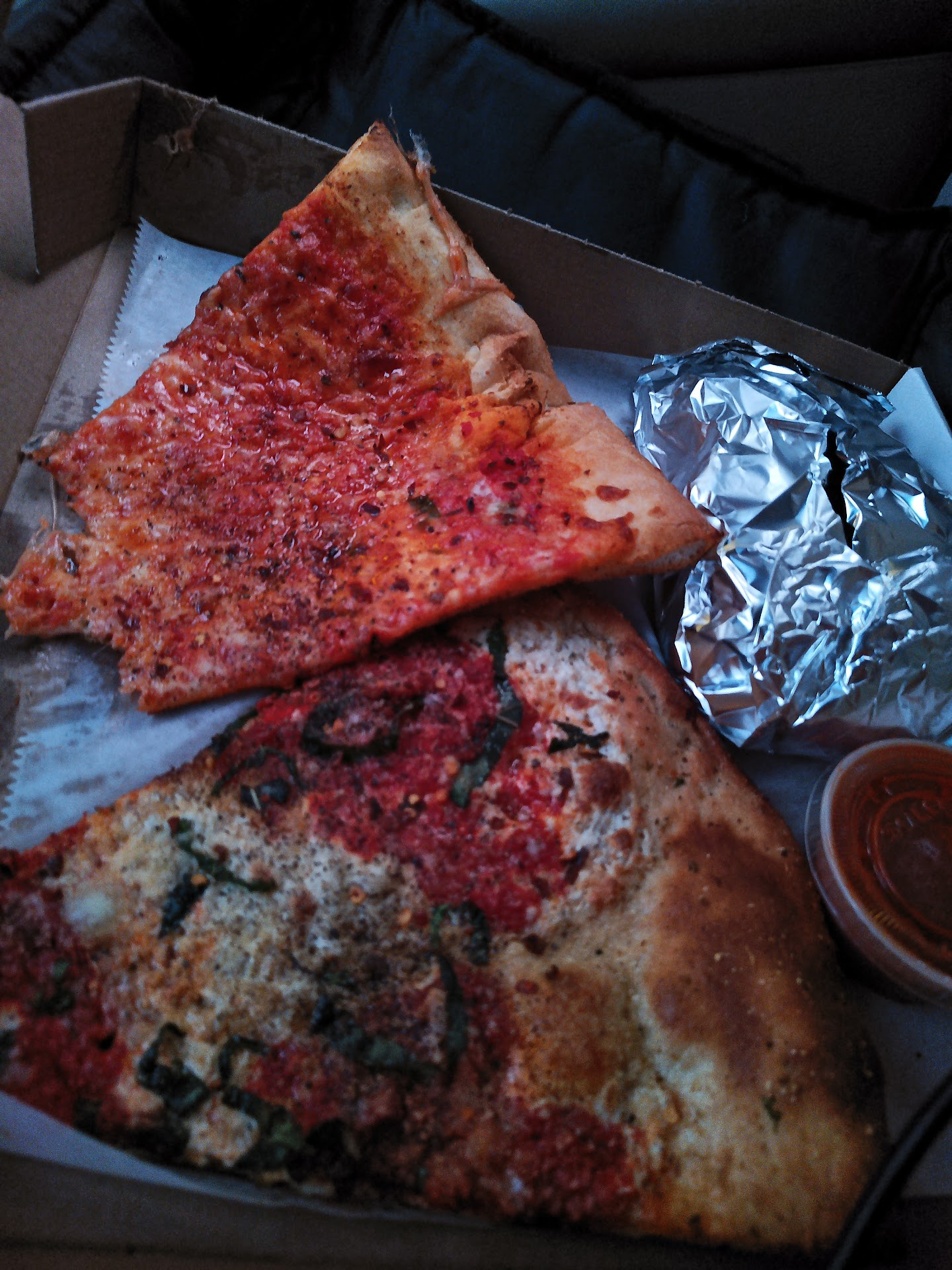 Thin, perfect char, big, and well balanced and flavorful ingredients that aren't too greasy. Sauce has some tang. Reasonable price. If that sounds like your type of slice, don't miss this place, it may be the best slice you've had all year. I know I know, but trust me.