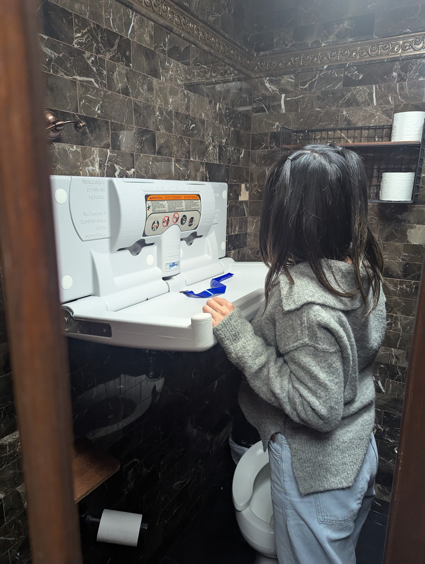 As a new mom to a now 4-month old, I do my best to be proactive and prepare for everything. We had the room booked for 4 hours. I am okay with knowing that the restaurant is not stroller accessible - fine, we can deal with that and carry the stroller up and down the stairs from the entrance, okay. BUT when you say you have a baby changing table, DO NOT give us the worst excuse of a table. The changing table was high above the open toilet and only in the women's restroom in only one of the stalls. There was no way I could change her when she was basically face-to-face with me and above my elbows. One wrong move, my baby would have ended up with her head in the toilet. Safety hazard. I was furious to be faced by such a ridiculous situation and not being able to offer my child a safe option to be comfortable at a child's birthday party. I had to change my baby in the corner of the party room in her own car seat and was faced with judgmental stares by the restaurant staff. Unbelievable. When you give me no options, I have to do what I have to do. There were multiple young children in our party and we all had to make do - we were there for 4 hours after all. It would have been nicer to not have any changing table than that one. You probably would have needed to be a 6-foot tall woman to use it. I even had to support my sister-in-law to change the birthday girl (the star of the party) because she was NOT about to be butt-naked in front of all her family and friends in the party room. We had to keep the bathroom stall open because both of us adults wouldn't have fit in the stall.