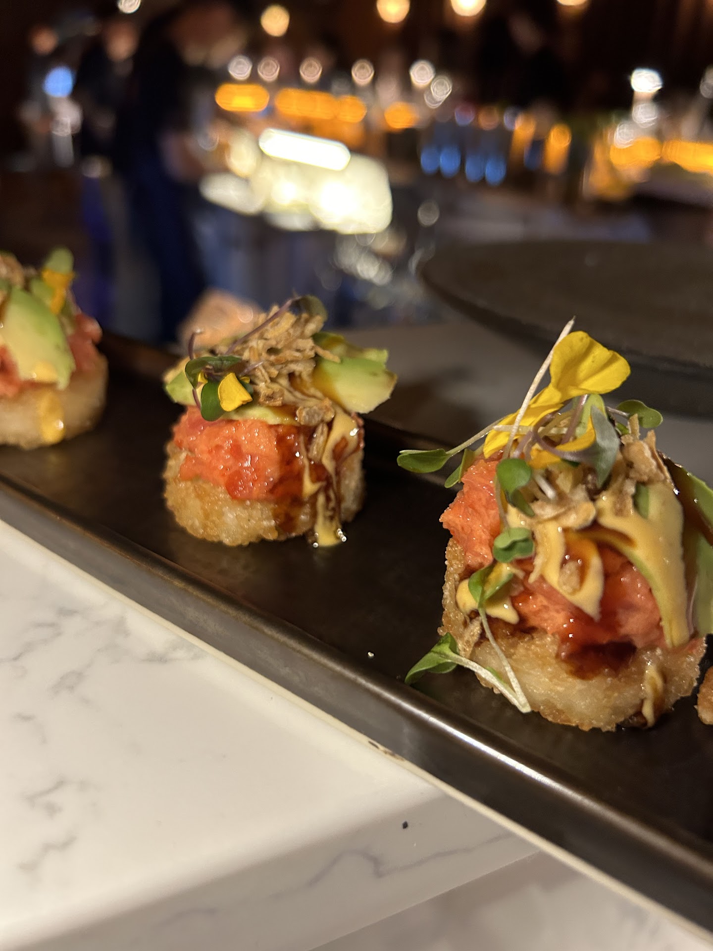 The portions were extremely small and completely mismatched to the prices. $11 for ten shishito peppers with a oversized bowl of soy mustard on the side, $18 for four minuscule crispy rice bites that were half the size of anywhere else I’ve seen, and hand roll sets costing $22-$27 that were tiny. The hand rolls were deconstructed and required us to assemble them ourselves (supposedly to keep it crispy). We were given triple the amount of seaweed, but the giant rice clumps with barely any fish did not even fill one sheet properly. It barely filled up half the hand roll (see photo). The ratio of rice, fish, and seaweed made no sense, and the leftover seaweed and ginger felt wasteful. My friend’s vegetable hand roll was literally three paper-thin cucumber slices with a small piece of avocado (insulting at this price point).