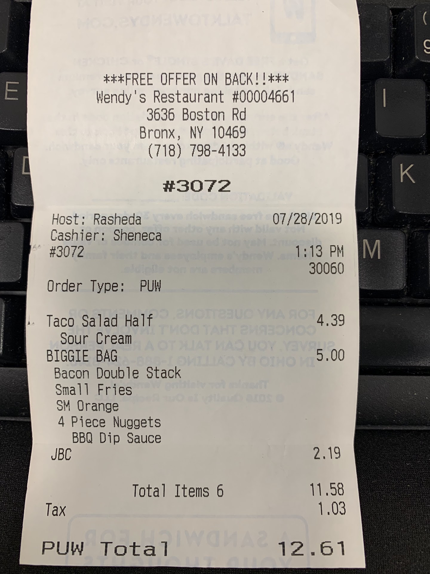 Never again! I have to take a cab I am very disappointed of Wendy's locatedon 3636 Boston Rd Bronx, NY 10454 on July 11 I placed an order on Wendy's App for delivery after waiting for almost 45 minutes my order arrived, I have some friends over so it was a big order. I opened the bag and 3 Cheeseburgers were missing, 3 French fries and 2 drinks. I immediately called the store and nobody picked up the phone and the Dasher had nothing to do with the missing items because the bag comes sealed; I didn't had any other choice than to take a cab and go to the restaurant. After I got there I waited less than 5 minutes. I explained to the cashier that some items were missing and I wanted everything to be make fresh because the food was cold, not the best customer service I was expecting! The cashier told me (in fact it was 2 young ladies) they cannot make the whole order again but they will make the sandwiches and fries that were missing. Right besides me it was a lady and she asked what happen and I asked her who she is lol she told me ( I'm the manager) she was about to leave but she said we'll make it fresh for you. The whole staff started complaining and talking over her unbelievable they reheated The guy who cooked the burgers was complaining until the point I requested my money back, the manager apologized and prepared my order. After I all the stress food was ready; I decided to check the bag and I opened all the sandwiches and one was missing the bacon, I went back to the cashier and the cooker said (Oh my God) I have no words to describe how disappointed I felt plus after we ate everybody start having stomachache!