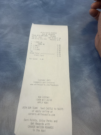 Read moreFor the amount of people they have on the clock during the shift, they are extremely inefficient and mismanaged. The girl taking orders at the register was scrolling social media on her phone (zero eye contact) while asking me what I wanted. When you think about consistency, this white castle location is known for that. And it is not the good consistency. While you wait for your food, you can hear customers complain about how their orders are never correct. They do not know how to put together orders, which causes further delay for other customers from receiving their order. Nor do they know how to handle times when the shift gets busy.