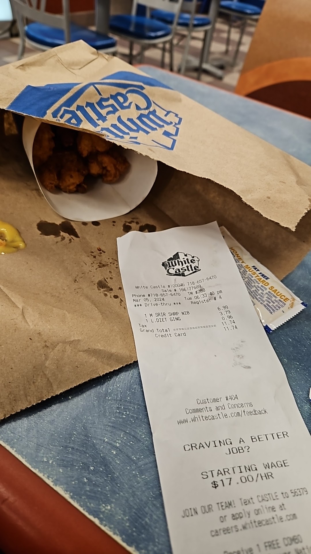 As someone who has been a loyal customer of White Castle for years, it is with great regret that I have to share my recent disheartening experience. Growing up, this fast food establishment was my go-to place, but sadly, the current state of their service has left me deeply disappointed.
