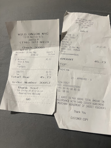 Read moreMay I start off by saying that pre-pandemic Wild Onion was THE place to go for some delicious eats. This place was 1 of 3 eateries I would would recommend to family & friends. Any Rasta pasta was delish, peas and rice authentic, Run down devine and a good portion, oxtail not fatty and tender. In the midst of the pandemic it was in the decline but we understood. Today, 3/7/22 highly disappointing & upset. Iâm in disbelief & I repeat can not believe this is the same restaurant that Iâd frequent at roughly twice a week. Today I ordered Rasta pasta(basically spicy Alfredo sauce w/okra?) where was my jerk seasoning, bell peppers, thyme and pimentos, Red Snapper Run Down not terrible but not as flavorful as Iâm use to w/peas and rice(barely any favor), cabbage & hard plantains? (why), fried bread fruit(no flavor, hard& dry) Jerk chicken was good, Brown Stew Chicken good. It is extremely obvious that this once upon a time restaurant needs a back to basics revamp on there food. As difficult as this review is though I want, desire & believe in supporting my local restaurant you just must do better. Make some significant...