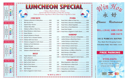 Read moreMy family and I have been coming here for years! Great spot. However, as of recently, some changes have been made, and not for the good. What happened to the wings? They are tiny! Shrimp in the dishes have dwindled. Lunch Soup size is smaller, and the crunchy noodles to add to the soup! I got 6!!!! Very disappointing. I hope Win Hou goes back to their previous service. My most recent order didn’t even give any...