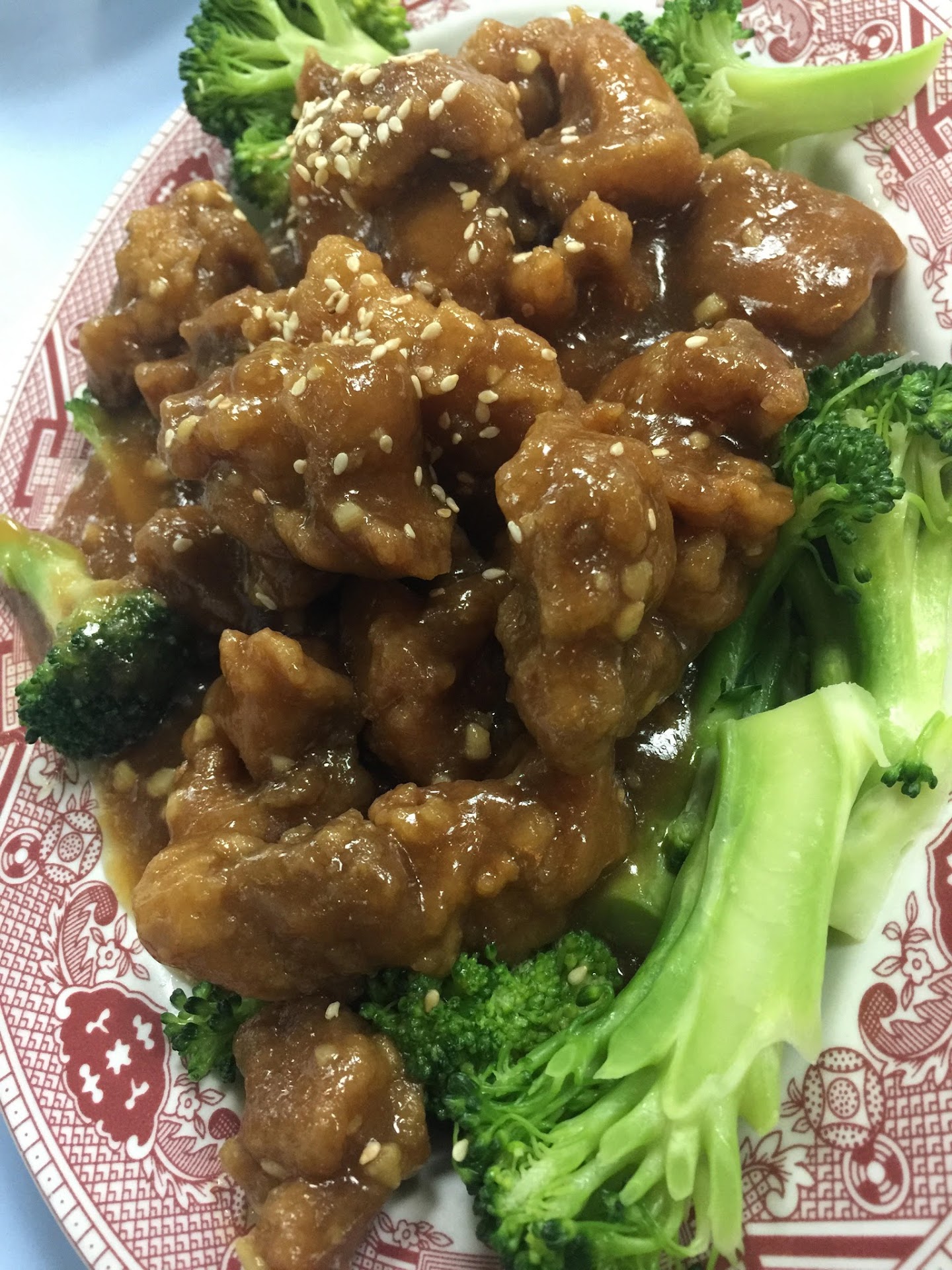 I ordered Sesame Chicken, with rice. Then later saw there was a small menu with soups on it, $1 for a small and $2 for a large, I choose the small. The soup had a few quite large dumplings with pork strips on the side. It was very simple, yet very good. However, I bite into a piece of cartilage, The gentleman who sat me brought the soup, I said thank you in Chinese, he didnât say anything. As I am writing this, the people who come in are greeted, as I was not.