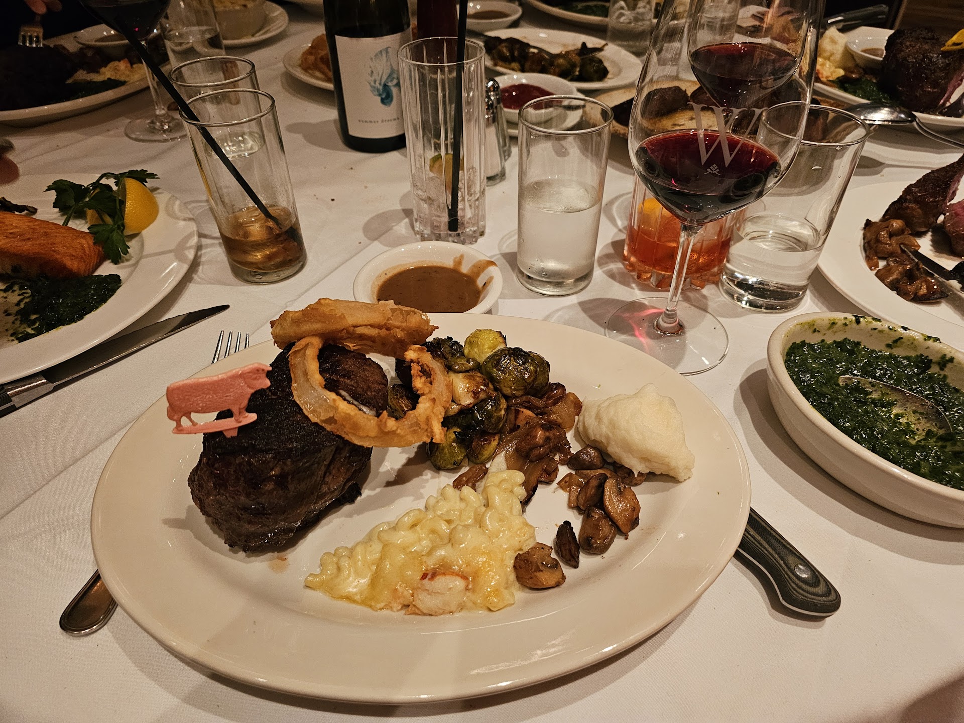 The sides were just OK honestly, I have had so much better. We had the creamed spinach, not really creamed. The Brussel sprouts were average and plain. The Lobster Mac and cheese was mediocre at best, the mashed potatoes were bland and average, mine are better. The onion rings were ok. The mushrooms were also nothing special and had onions in them. The dipping sauce for the Filet Mignon was too thick and salty.