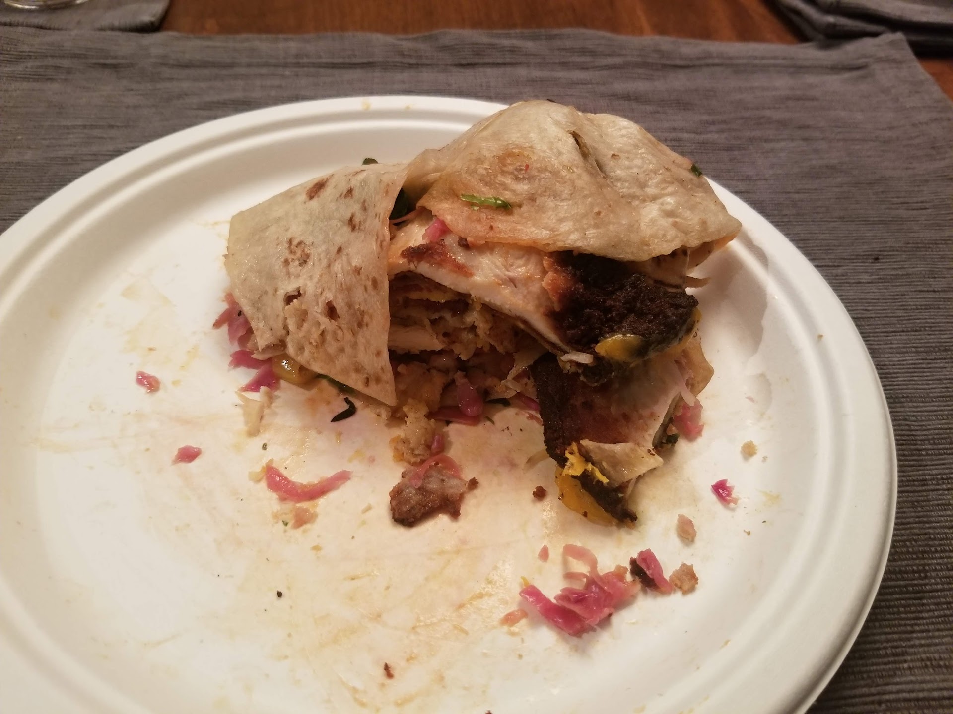 Update 11/2/2022: The above was made sometime in the late fall 2021, I have since adjusted the stars steadily down from the original 4/5 to a 1/5. Their service and food quality has gone downhill. Their app no longer works, they don't take orders over the phone. Yesterday, we placed an order online, were notified by text that it was ready, walked the 3 minutes to the place, and we still had to wait 10 minutes for our order to be made. What's worse, the wraps in our order had a terrible distribution of ingredients (to be fair this has never been their strong-suit), and the chicken was hard and burnt. See photo. Changed review to 1/5 stars.