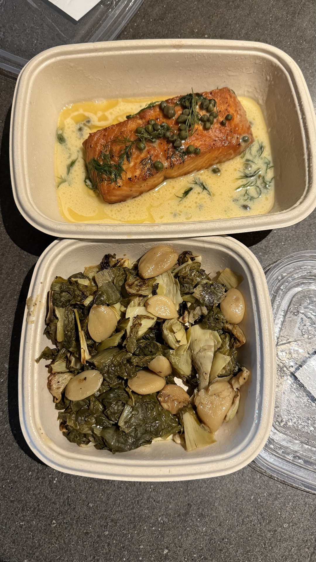 Will stop again. We ordered pickup, but there is some seating here similar to fast food places. The food was good. But for the cost we didn’t think it would be worth it without a discount coupon. Luckily they seem to be sending them out regularly. I had Salmon and steamed greens with artichoke hearts rom Mainstay. The salmon was a little over cooked. Slightly crispy on the outside. Not bad on the inside. But. Little less juicy than I like. It tasted good and the sauce definitely added nice flavor. I just like it on the rare side. The side dish was good. Not exceptional and certainly not bad. My partner had a build your own salmon and tuna poke bowl. She thought it was good as well. For a quick pickup meal they have a ton of choices and with a coupon I’m sure we will be back.