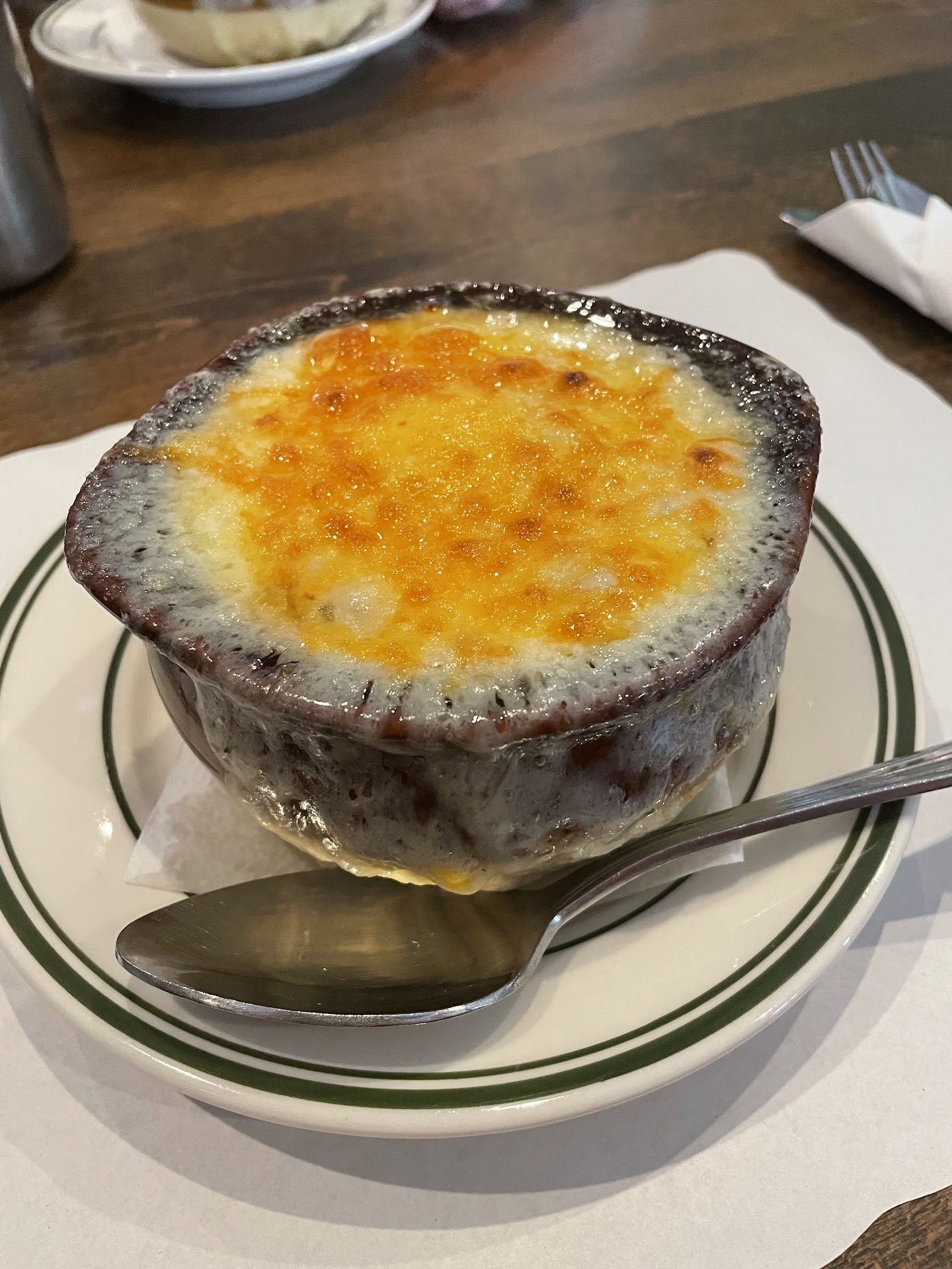So this Woodside Cafe -- I Queens, is simply AMAZING!! Our server "Kristina" made spot on recommendations for our meal. I had a bowl of French Onion soup that may very well rival among the best Onion Soup recipes I've ever ever had. The broth was slightly sweetened with Irish Ale, beautifully caramelized onions, croutons with Irish cheese. It's a definite 10-out-of-10 rated bowl for sure.