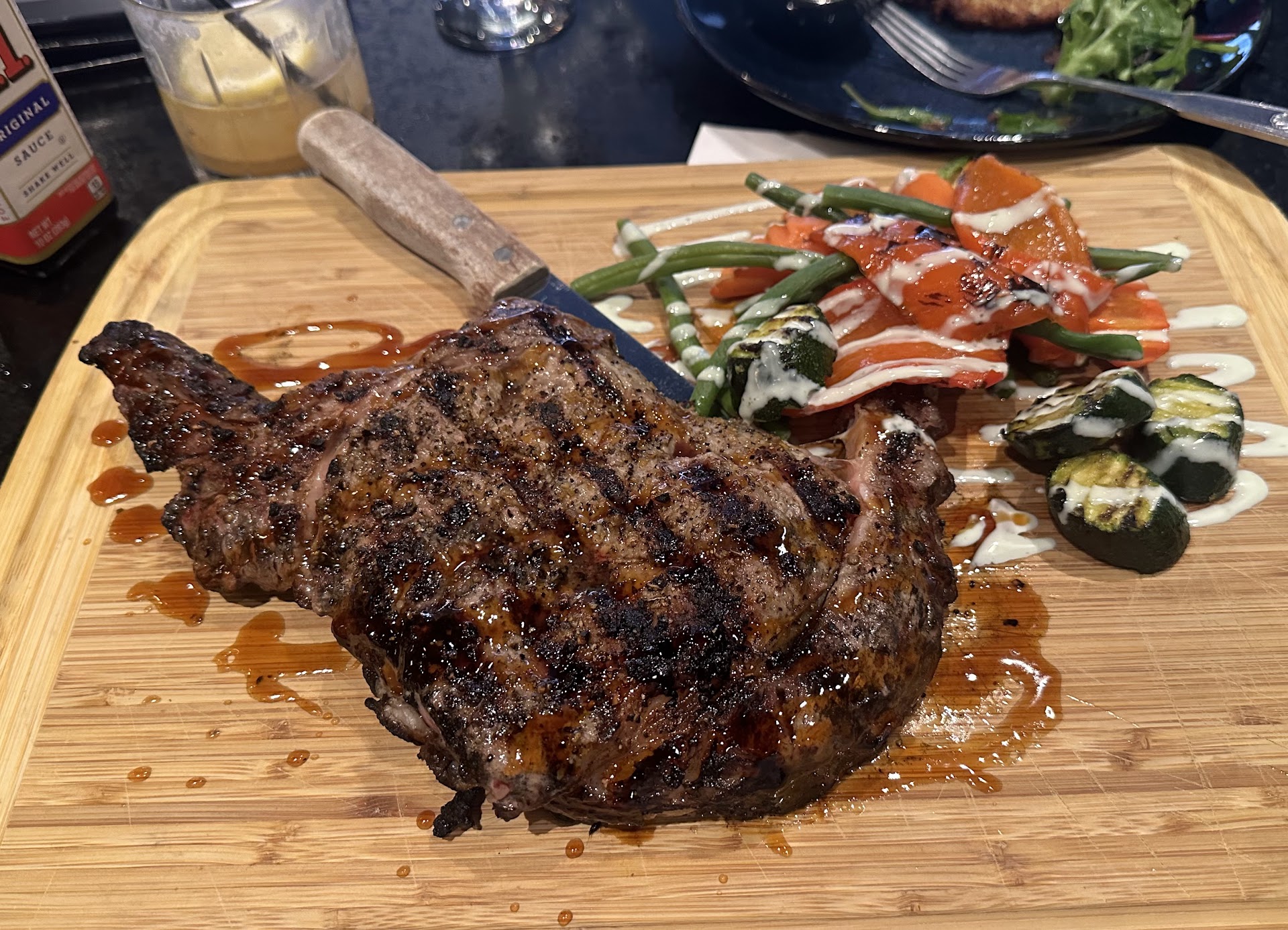 The atmosphere was very relaxing, making it easy to focus on my studies while enjoying my meal. I ordered the ribeye steak, and though I can’t remember the name of the side dish, it had an incredible texture—something with potatoes that was absolutely delicious.
