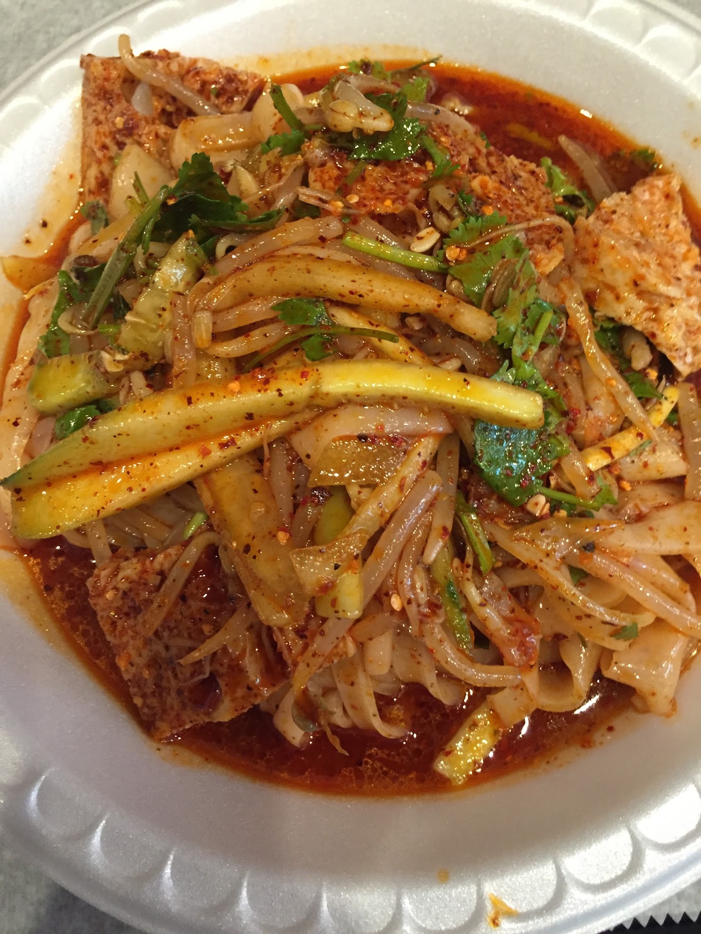 A person would believe that I would then put my food down and not continue because it was too hot/spicy....but that person would be wrong. You see, I continued to eat. And eat. And cry tears of pain. And eat more. Like an addict: Reveling in the ecstasy of that sublime dish, while being mortally punished by it. No amount of any kind of beverage could quench the heat my mouth was engulfed in. Midway through my bowl, I could no longer stand the heat. So in a desperate attempt to save my precious meal....I ran my noodles and lamb under water (in a strainer under my faucet). Then, with a humiliated, disgraced heart I began to eat my bowl of noodles again. The water had washed away some of the heat (and flavor admittedly), but it couldn’t wash away my shame. For in my weakness I could not bask in the full, delicious glory that is the Curry Lamb Noodles.