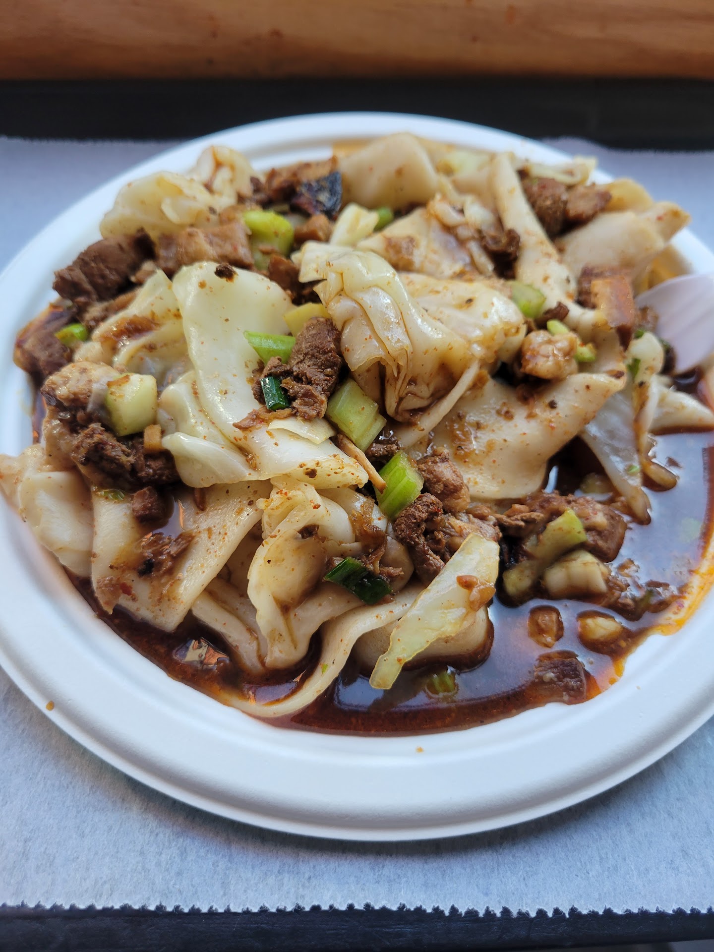 The buger was aromatic and delicious as well. The cumin lamb was not gamey. It was chewy flavorful and addictive as well. I dipped the bun in the sauce of the noodle, and I was in heaven.