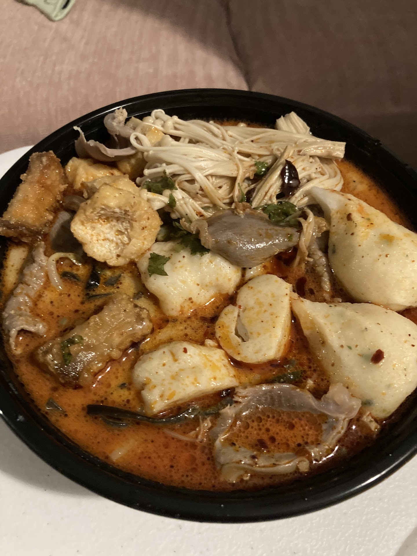 I put in the instructions to just not put pork broth in it just in case. The owner or host was so nice that he called me and explained the mala tang has pork broth and suggested an alternative for me. It was super nice of him, he didn’t have to do that. So honestly 5 stars just for reading my messages and calling...
