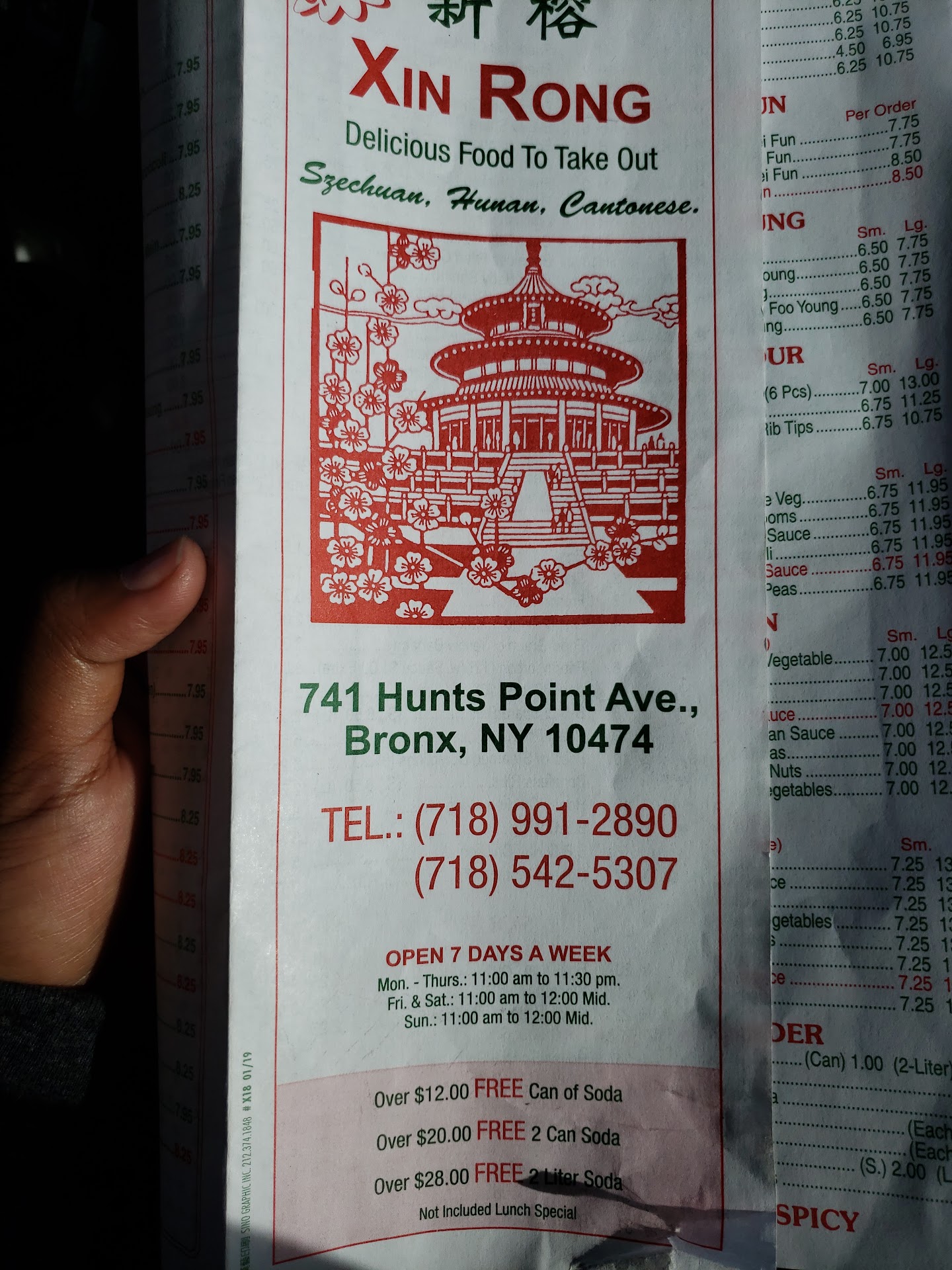 Best Chinese food in the South Bronx! Nothing wrong with Xin Rong! Haha Their always prompt and fast with deliveries. I always get their chicken wings with pork fried rice. I tried their fried wontons with cheese in which I thought were crab Rangoon’s because when I asked if it was the same, they said yes and sadly it wasn’t! If you want fried cheese then okay but I was expecting cream cheese and sadly it wasn’t. Their fried dumplings with pork are pretty good and really fulfilling as well! None the less this will always be my go to Chinese food restaurant in...